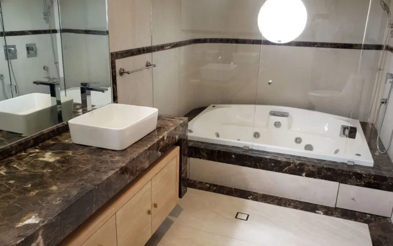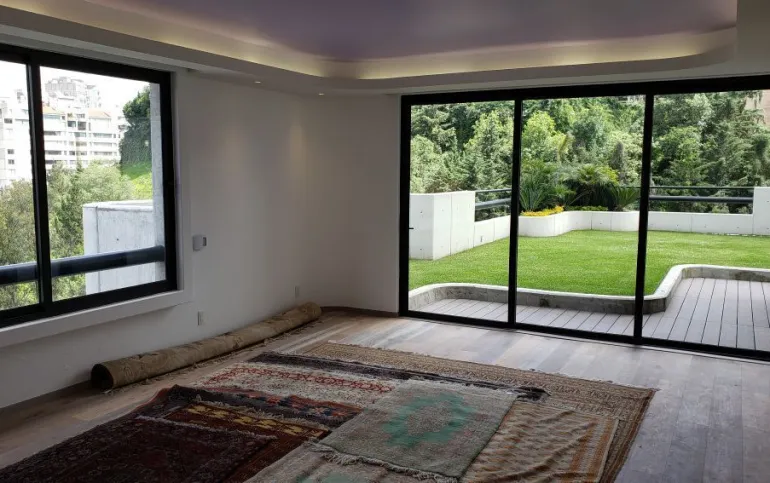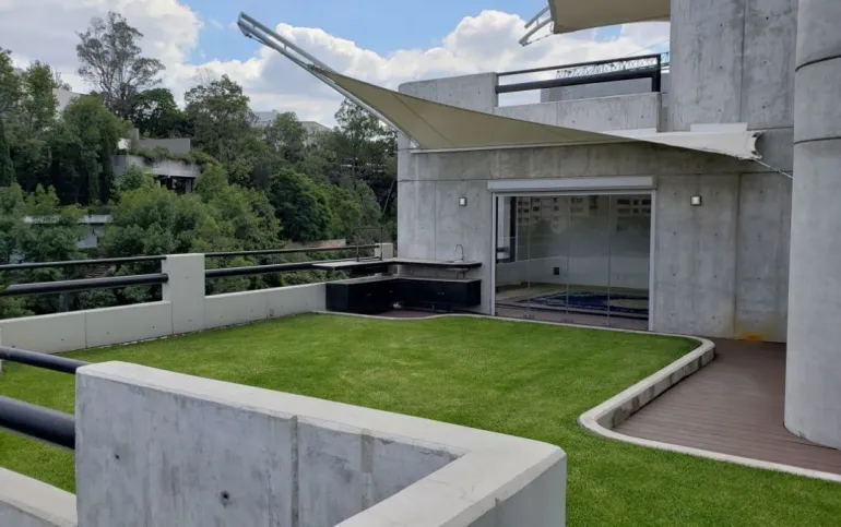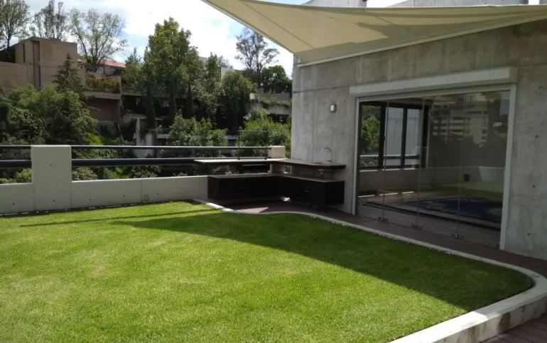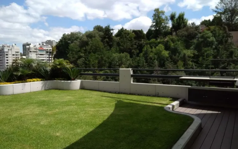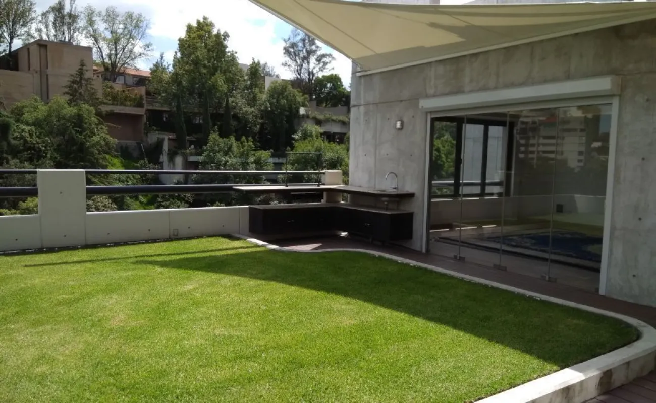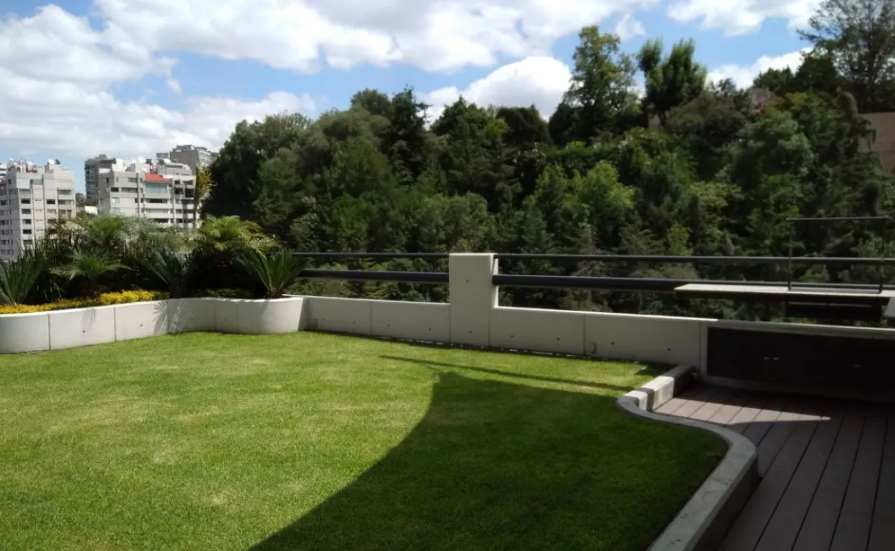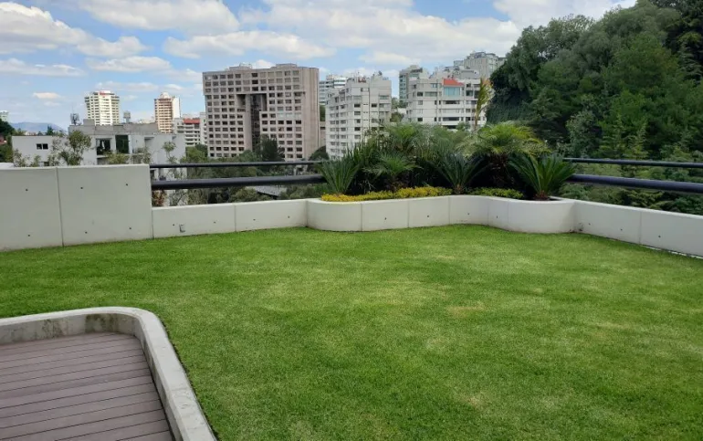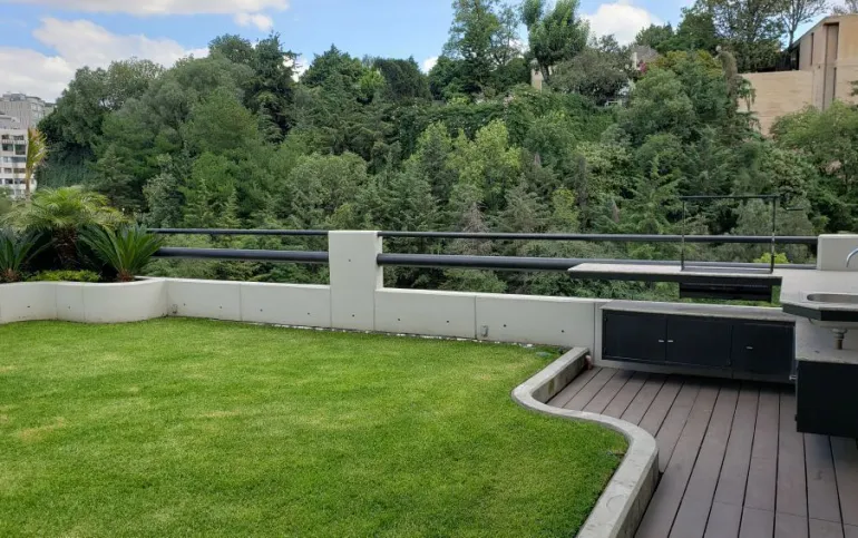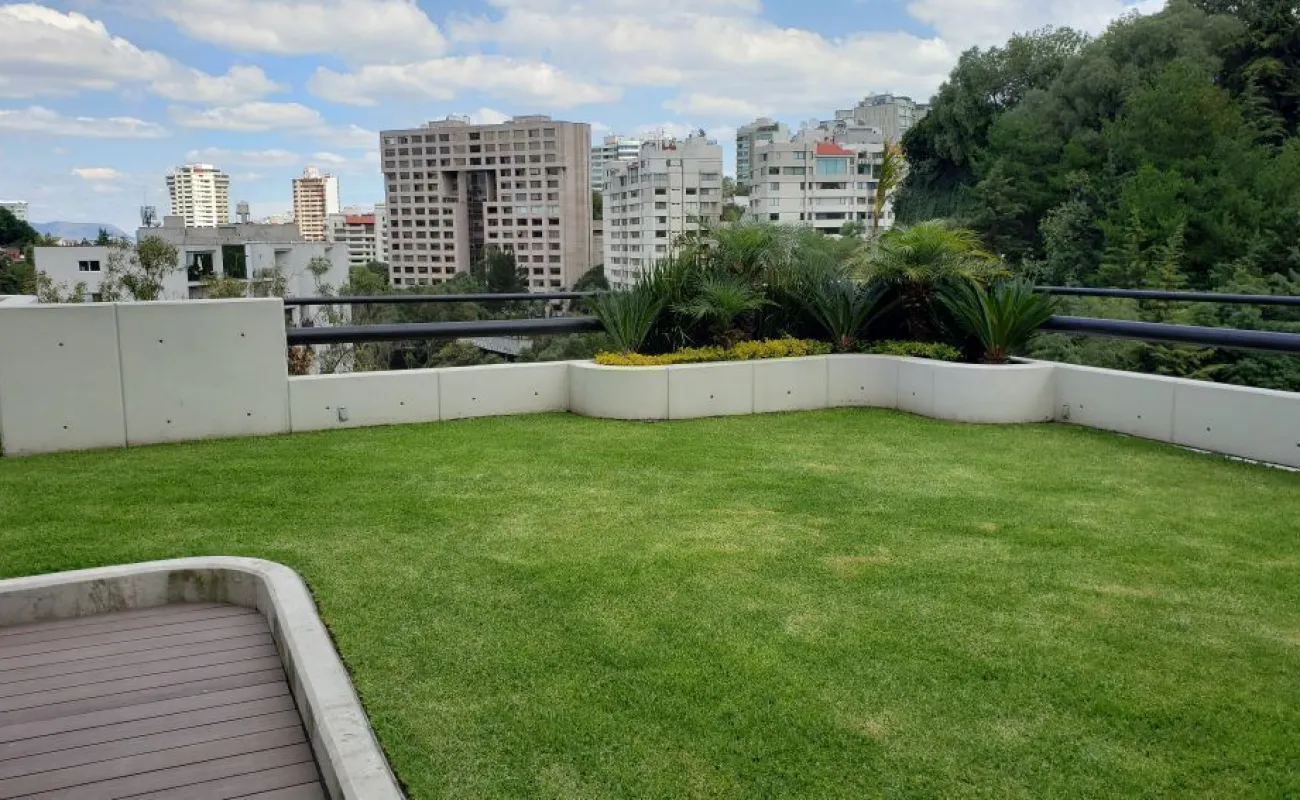 En la planta baja del departamento, encontrarás una cocina integral totalmente equipada con cubierta de granito, una amplia sala-comedor con bar, y una espaciosa recámara principal con un gran walk-in closet, baño con jacuzzi y acceso directo al jardín privado. En la planta alta, encontrarás tres recámaras junior, todas con walk-in closet y baño propio. Además, tendrás a tu disposición un vestíbulo, habitación y baño para el chofer, y dos hermosas terrazas con velarias que te permitirán disfrutar de impresionantes vistas.