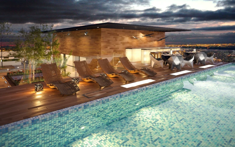 Pero eso no es todo, este exclusivo desarrollo residencial ha sido concebido con la visión de encontrar el equilibrio perfecto entre bienestar físico, relajación, entretenimiento y vida social. Las increíbles amenidades que hemos desarrollado para ustedes incluyen un elegante lobby para recibirlos con calidez, una espectacular sky pool para deleitarse con vistas impresionantes, un moderno gimnasio para mantenerse activos y en forma, un relajante spa para consentirse, un carril de nado para los amantes del deporte acuático, una sala de cine para disfrutar de emocionantes películas, un kids club para que los más pequeños se diviertan en un ambiente seguro, un salón de eventos para celebrar momentos especiales, un local comercial que ofrece conveniencia, un sky bar con área lounge para relajarse y socializar, un motor lobby para recibir a sus invitados con distinción, un estacionamiento para visitas y un completo sistema de seguridad para brindarles tranquilidad y protección.