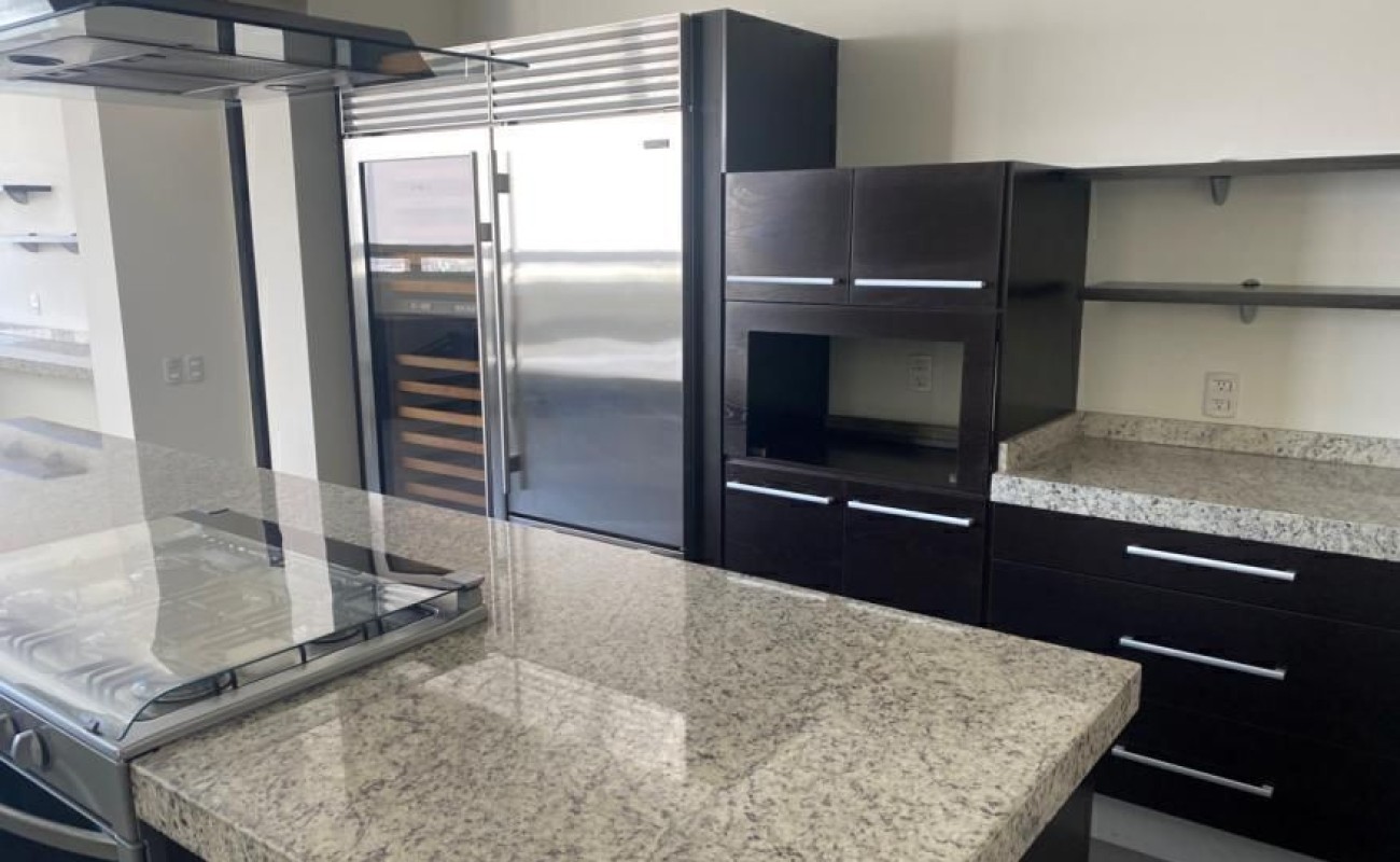 recamára 1 con vestidor y baño completo, recámara 2 en planta alta vestidor y baño completo, recámara 3, vestidor y baño completo, terraza, cuarto de lavado, recámara de servicio, closet, baño de servicio, patio de servicio, 4 cajones de estacionamiento, en sótano y 2 bodegas.