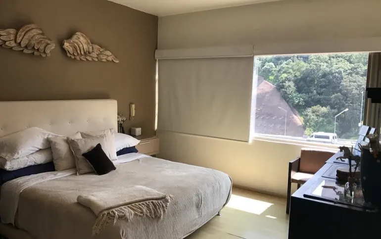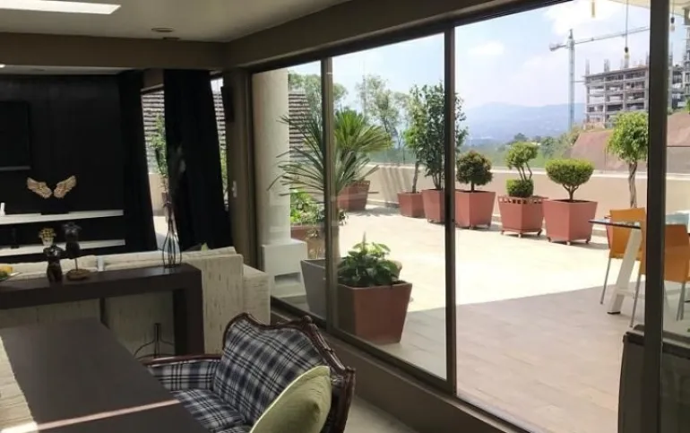 Hermoso y amplio departamento o Townhouse de 2 pisos, entrando del lado derecho está un medio baño para visitas, siguiendo un hall y del lado izquierdo la cocina integral moderna e iluminada , el cuarto de lavado está en un costado de la cocina, bajando unas escaleras está la enorme estancia para sala y comedor con grandes ventanas, hay un pasillo que da a las 3 recámaras con baño completo cada una, la principal con enorme vestidor y un gran baño completo. Del lado de la sala hay unas escaleras con un gran tragaluz que ilumina todo el departamento y da a una hermosa área social con medio baño, barra, sala de estar , sala de TV y una hermosa terraza con pérgola de 120 m2. Además hay una recámara más en ese piso con baño completo que se puede usar para visitas. El cuarto de servicio con baño está afuera a nivel de los estacionamientos. Ven a conocer esta gran opción!!! Cerca de la Anahuac del Sur y de la Supervía!!