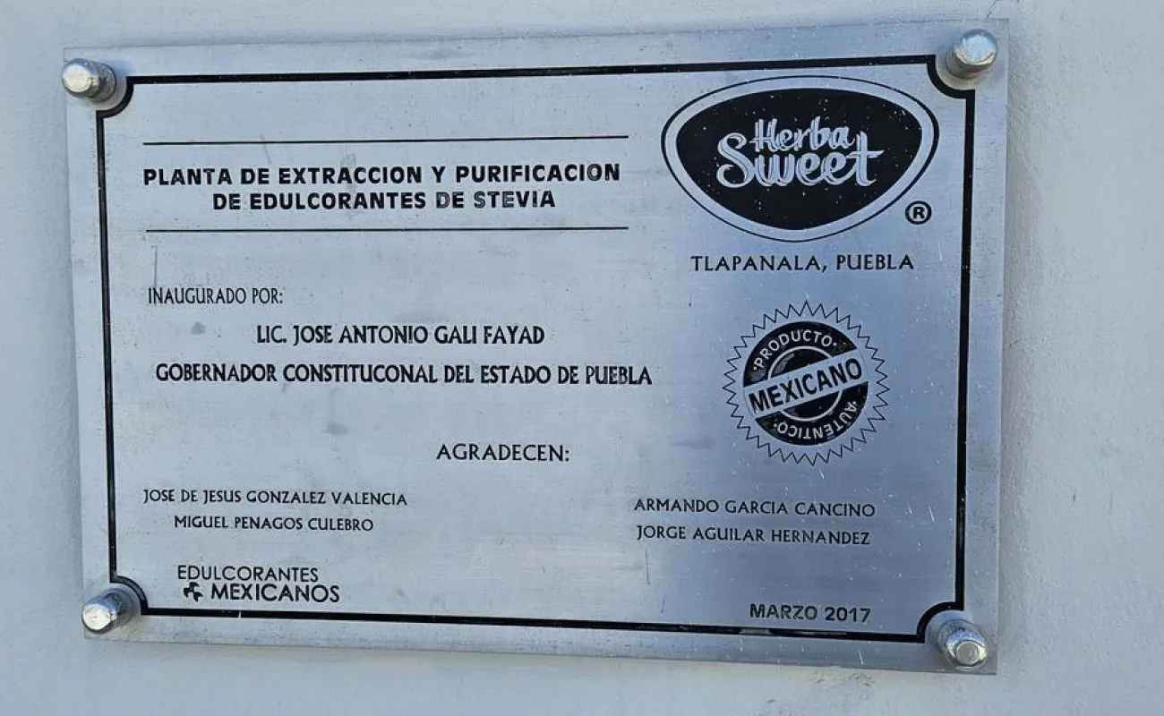 Planta de Stevia (también conocida como los Nuevos Invernaderos), localizada en el Municipio de Tlapanalá, Puebla, a 800 metros del Rancho de Tepetzingo, de la Tienda Ximena (José María Morelos y Pavón, 74546 Rancho de Tepetzingo), de Plantas Don Nico (Ignacio Zaragoza, 74546 Rancho de Tepetzingo), muy cerca del Rancho El Merlín. Partiendo de Tlapanalá, tomar el Camino a Tepeojima con rumbo al Rancho de Tepetzingo y al llegar a la calle de Ignacio Zaragoza tomar a la derecha y otra vez a la derecha hasta llegar a la Planta de Stevia.