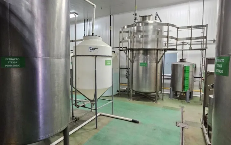 Planta de extracción y purificación de edulcorantes de grado farmacéutico, con instalaciones para destilación y purificación de materias primas, mediante proceso de extracción (con CO2) (con agua) para la obtención de extractos, polvos, sustancias liquidas, medicamentos y fabricación de productos alimenticios.