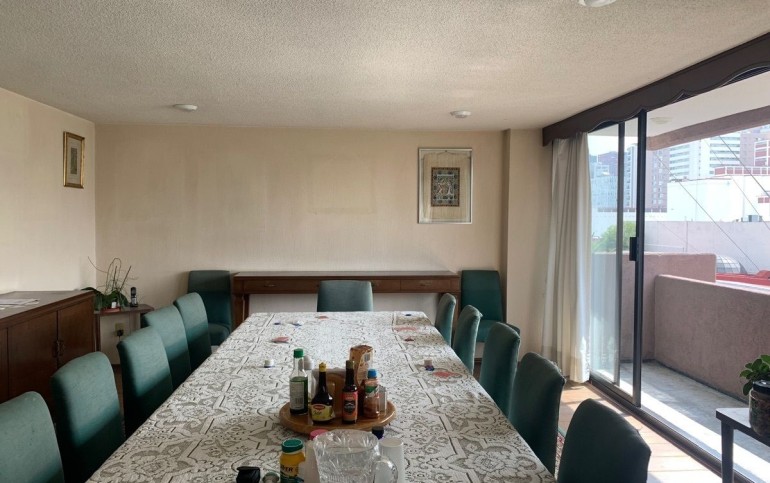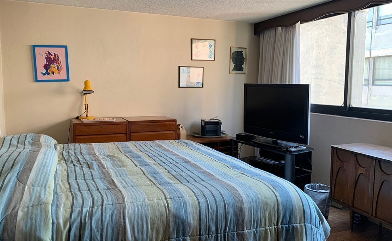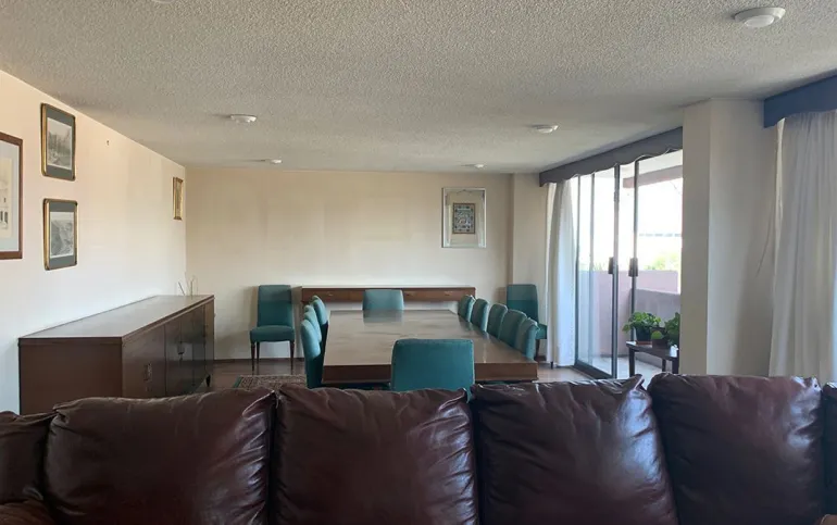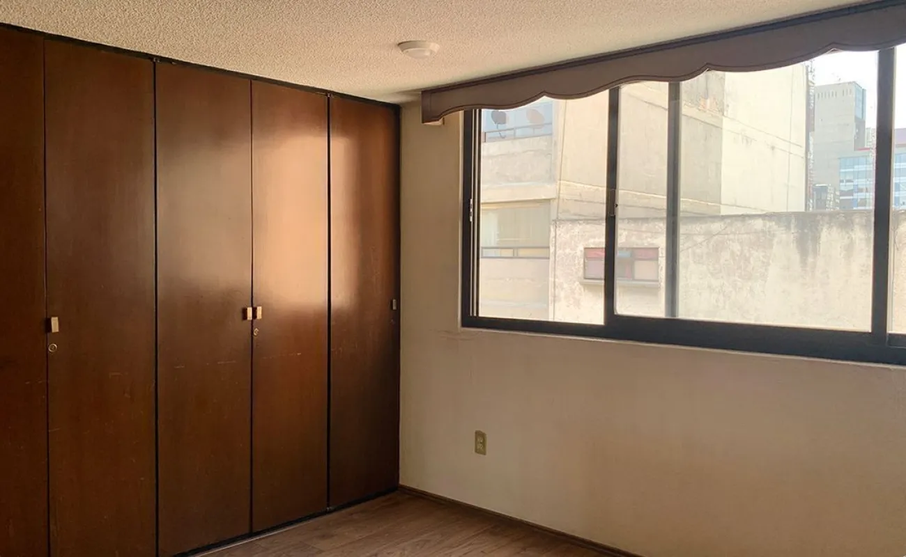 Departamento en piso 5 con mucha luz gracias a su orientación este-oeste, en calle amplia y abierta. Cuenta con grandes espacios para sala comedor y oficina. Cocina cerrada con lugar para poner una pequeño desayunador, tiene lavanderia estrecha y cuarto de servicio integrado con baño completo.