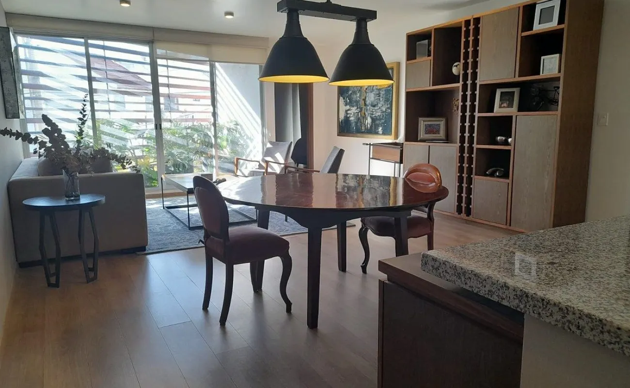 La estancia se integra con cocina abierta, creando un ambiente moderno y funcional.