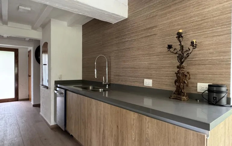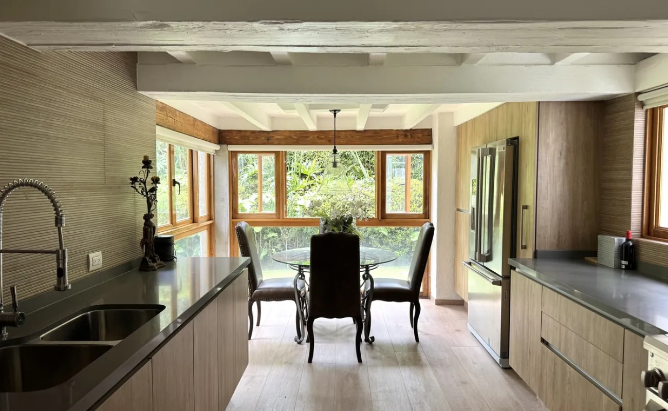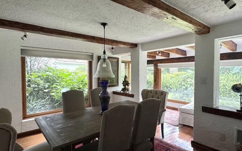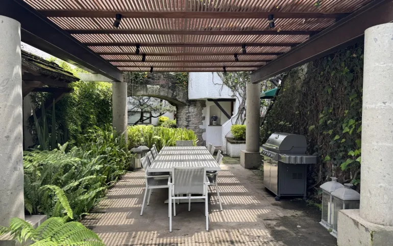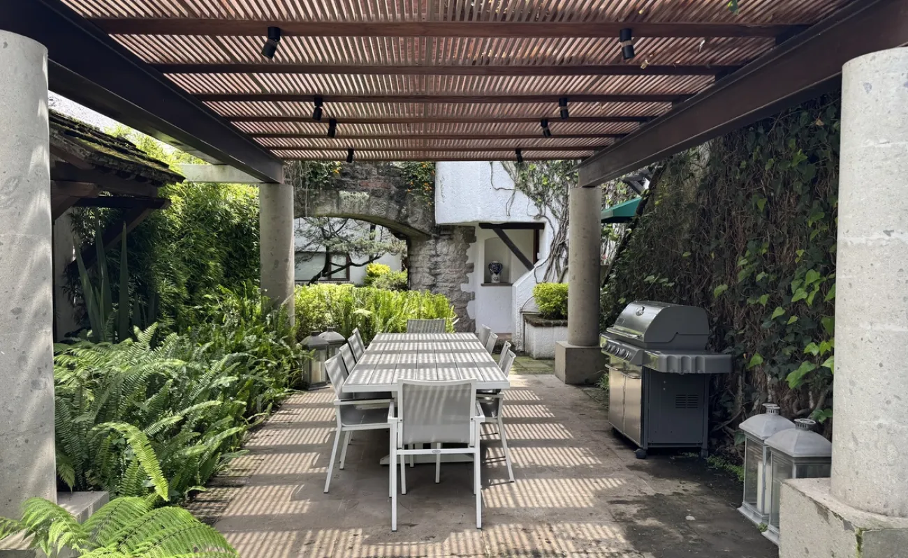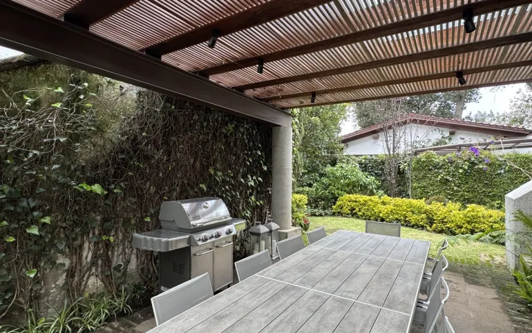 Increíble casa con dos jardines, En tres niveles, tres recámaras, 3.5 baños, cocina, con antecomedor, una bodega, cuarto de lavado, cuarto de servicio, garage para dos autos. Amplio jardín, quincho para asados .