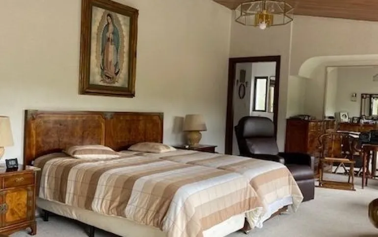 Bosque de Granados, funcional, casa en venta, magnífico, proyecto, con excelente orientación y mucha luz, 519 m de terreno, 398 m de construcción, dos recámaras con opción a la tercera recarga, la principal con amplio baño y dos vestidores, la segunda recámara con vestidor y baño, Estudio con baño completo, y cava, cocina, integral, enorme, alacena, pantry, área de lavado y patio de tendido, amplia sala comedor, medio baño de visitas, jardín, frontal y posterior, terraza, 2 cuartos de servicio con baño, bodega, Garaje para tres autos techados con portón eléctrico, amplios, clósets de blancos y de visitas, calefacción, aire, lavado, intercomunicación, paneles solares, dos calentadores, cisterna y bomba de agua, todo en excelentes estado de conservación. Precio $19,700,000 MXN