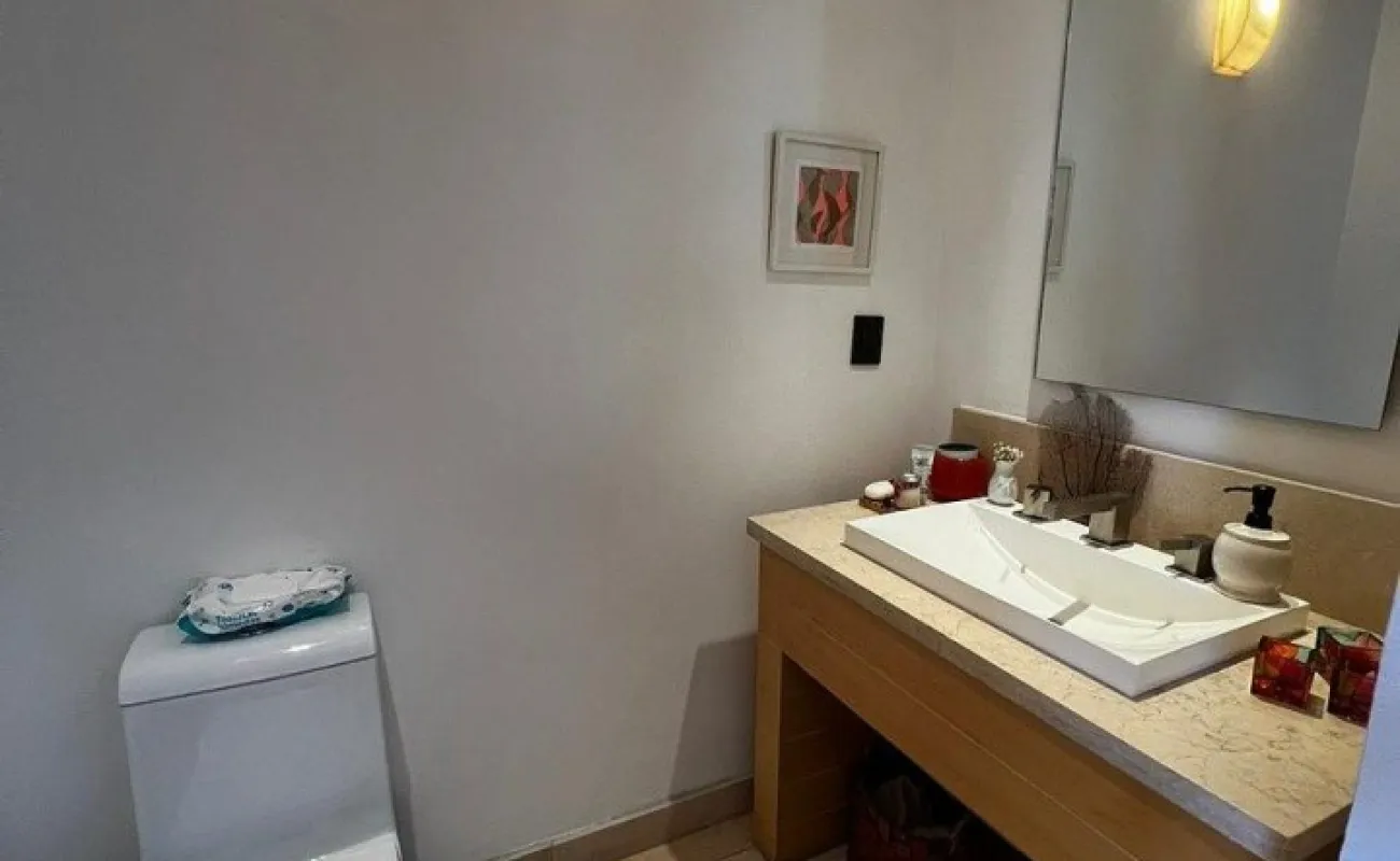 Con una espléndida vista, desde una terraza de 45 m². Tiene 3 recámaras con vañi, sala de tele, cuarto de lavado y de servicio. La renta incluye todas las amenidades de áreas comunes y del club. Tiene 200 m2 habitables y 45 m2 de terraza.
