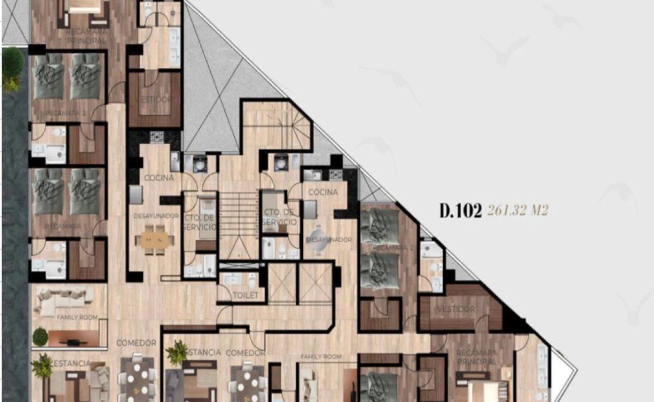 ¡No pierdas la oportunidad de vivir en el departamento de tus sueños! Te presentamos este increíble departamento de doscientos setenta y tres metros cuadrados, ubicado en una de las zonas más exclusivas de la ciudad. Con tres recámaras, cinco baños y cuarto de servicio, este departamento es perfecto para ti y tu familia.