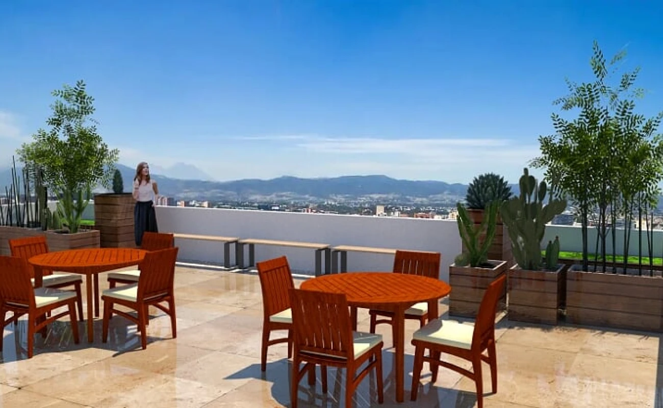 Un Estacionamiento techado), "todos tienen" 2 recámaras, (principal con baño vestidor), 2 baños completos, Sala, comedor, cocina integral, área de lavado, cuenta con 2 Calentadores Solares y normales y roof garden común, área habitable 80 m2, OFRECEMOS ASESORÍA DE SERVICIO DE BROCKER, Fecha de Entregan Aprox. en enero del 2025 .