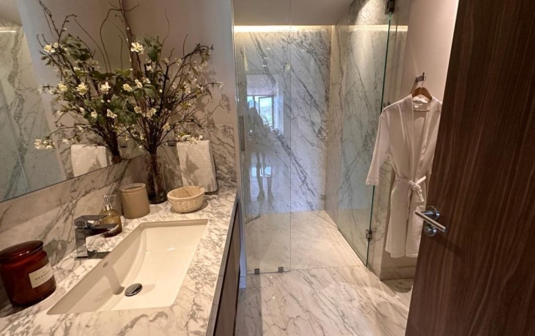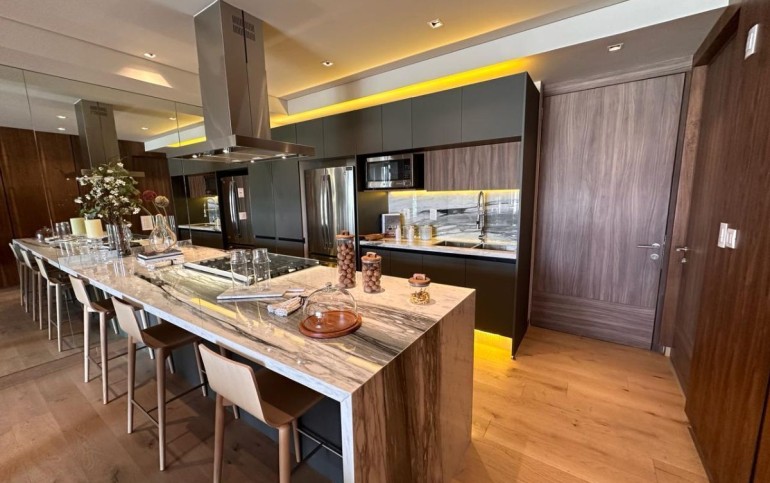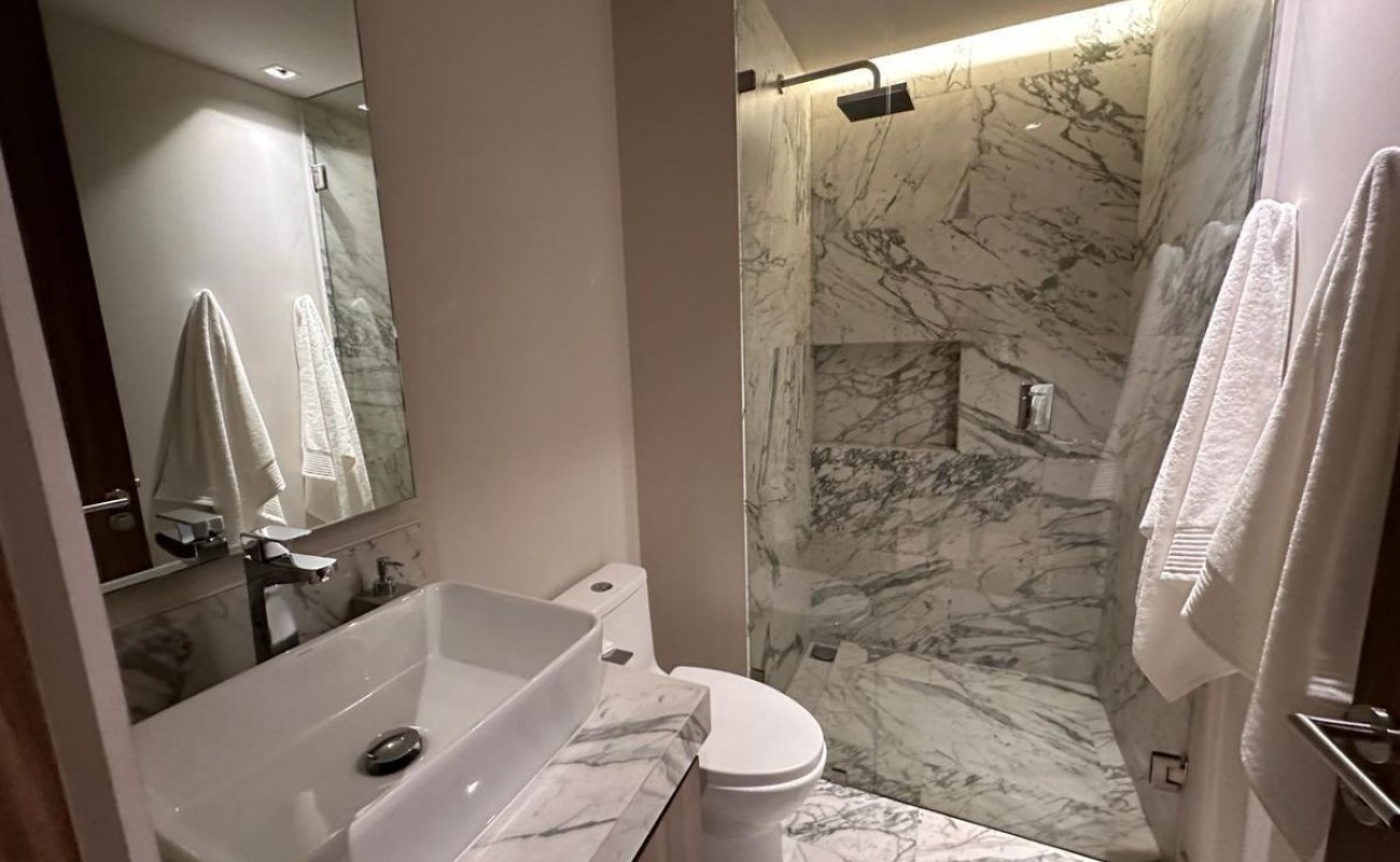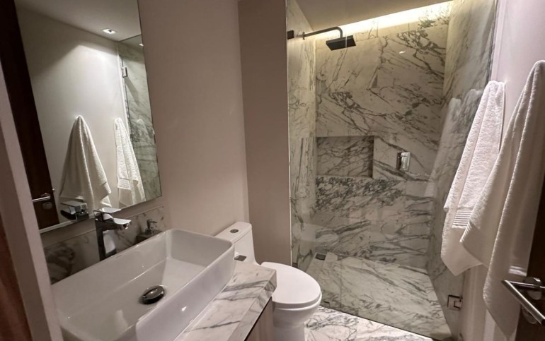 Cuenta con 3 recámaras con salida a la terraza 2 baños completos , un medio baño y un family. Cocina abierta dando a la Sala y comedor que tienen salida a la terraza.