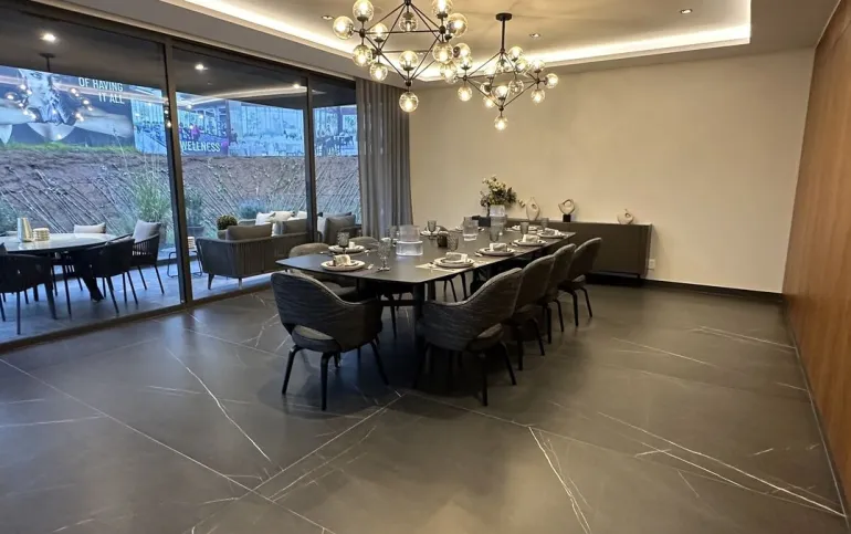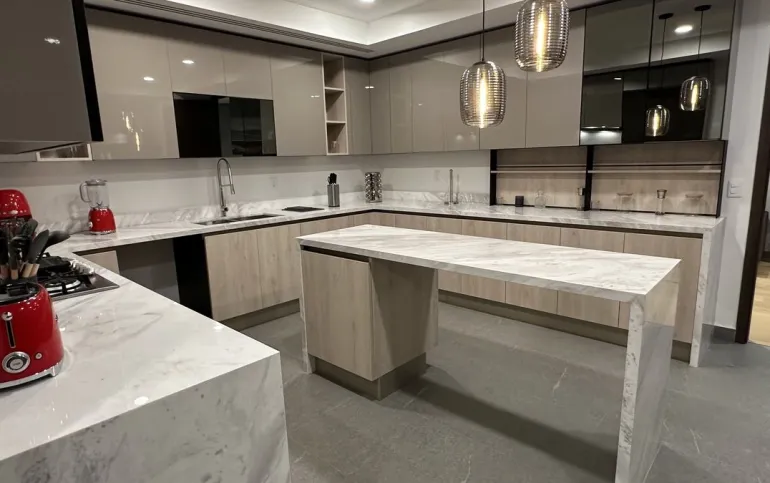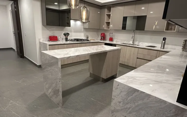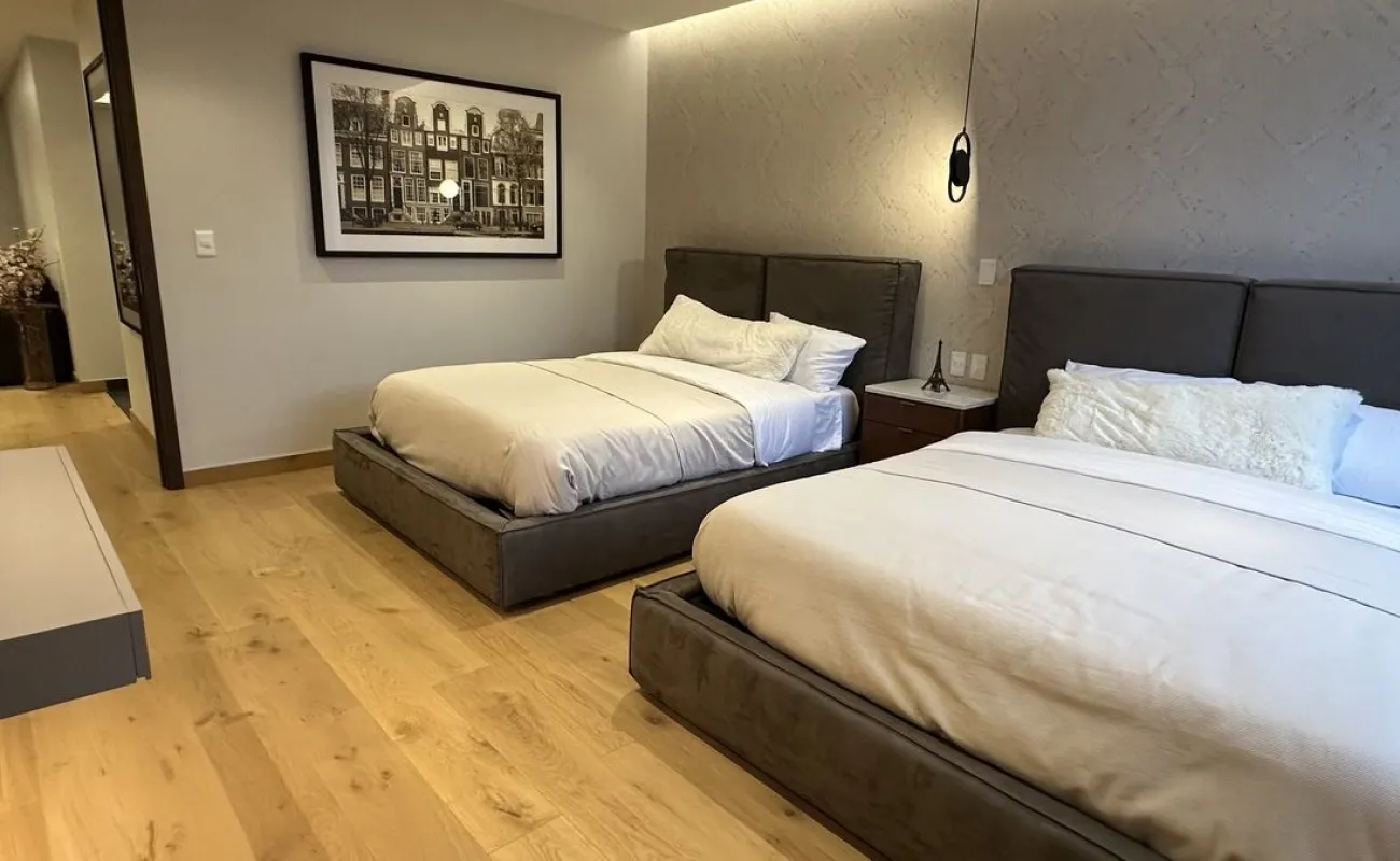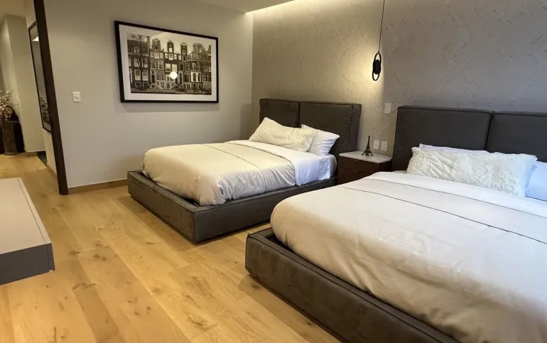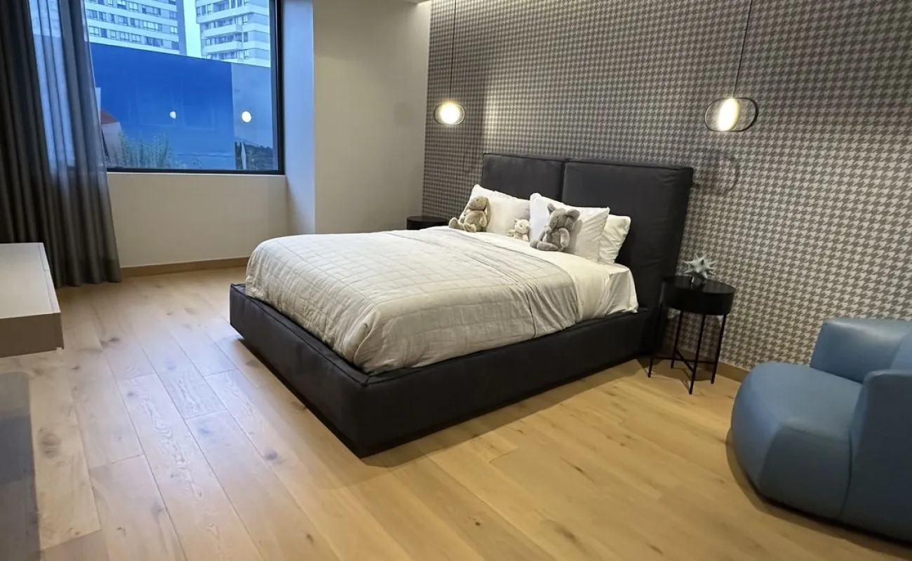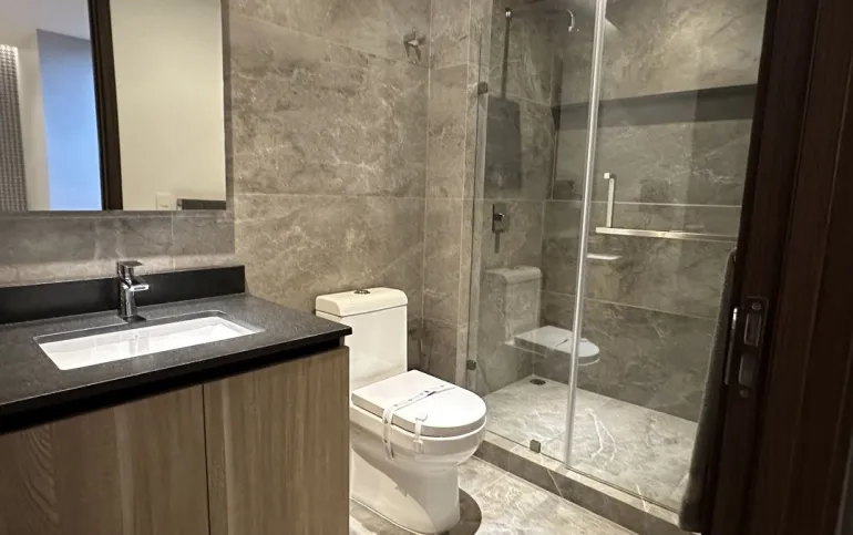 Los departamentos se entregan en obra blanca con acabados de lujo: pisos en áreas húmedas; carpintería terminada en vestidores y puertas; baños, cocina, área de servicio y terraza completamente acabados. Las áreas sociales y recamaras se entregan sin pisos y plafón liso con salidas para las lámparas, para que cada propietario pueda personalizarlas a su gusto.