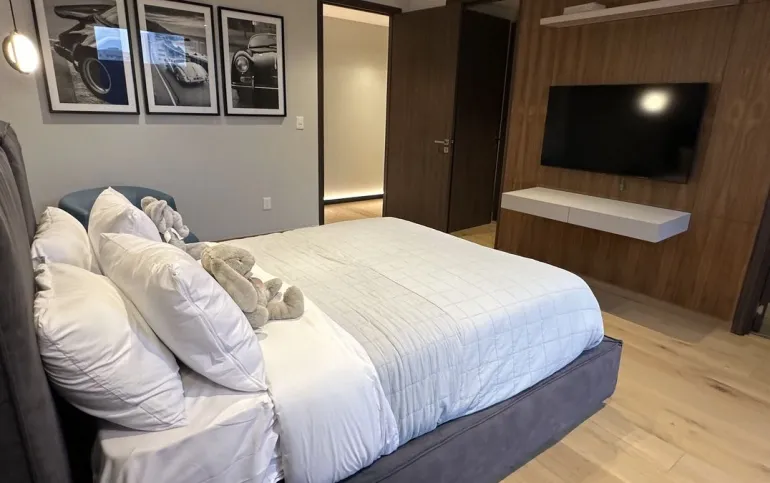 Los departamentos cuentan con amplios espacios de 332m2 que incluyen terraza, distribuidos en 3 recamaras, cada una con vestidor y baño completo; family room, sala y comedor de gran amplitud con acceso a una amplia terraza con vistas espectaculares, medio baño de visitas, cocina integral equipada, alacena espaciosa, área de lavandería, cuarto de servicio, 3 lugares de estacionamiento y bodega.