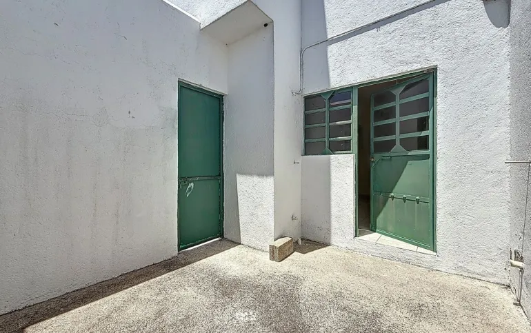 Puerta de acceso a la casa, recibidor, despacho, medio baño para visitas y para el despacho, recámara de invitados con su baño completo. Bajando un desnivel está la estancia sala-comedor con puerta de acceso a la terraza, la cocina, el área de lavado y el patio de servicio.