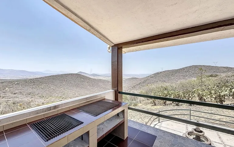 La terraza es techada, cuenta con asador y tiene hermosa vista al Valle de Huimilpan.