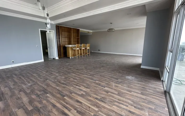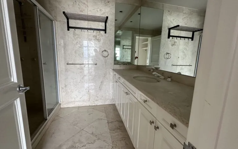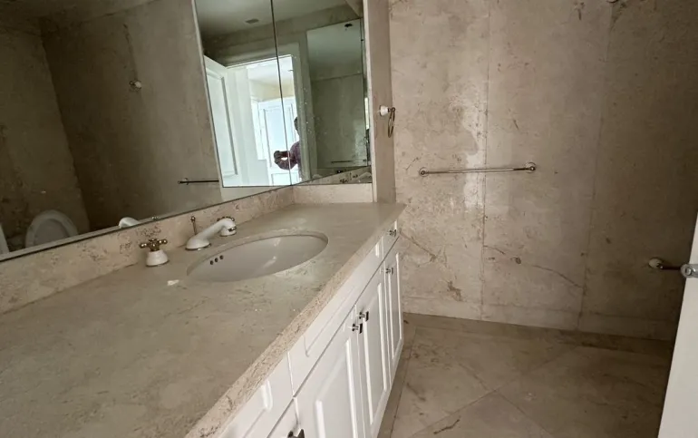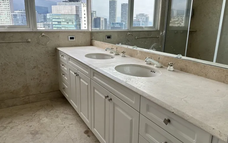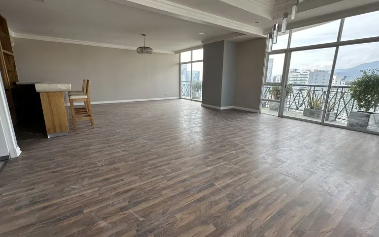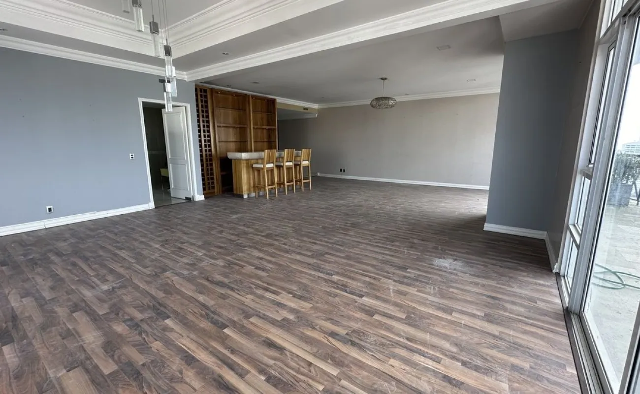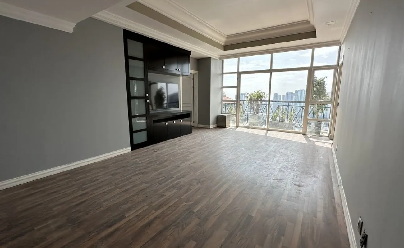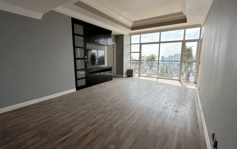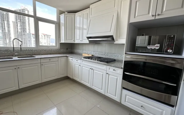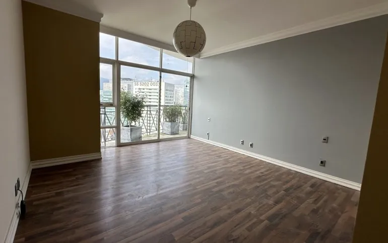 Increíble departamento recién remodelado frente al centro comercial santa fe. Muy iluminado y con vistas panorámicas. Cuenta con 3 muy amplias recamaras cada una con vestidor y baño; family de gran tamaño que da a una terraza secundaria; sala y comedor con barra y mueble de bar para vinos y copas y acceso a una bonita terraza, vestíbulo de acceso, elevador directo al departamento, medio baño de visitas; cocina integral equipada de buen tamaño con espacio para desayunador, cuarto de servicio completo y área de lavandería; calefacción; tres lugares de estacionamiento y bodega.