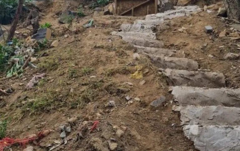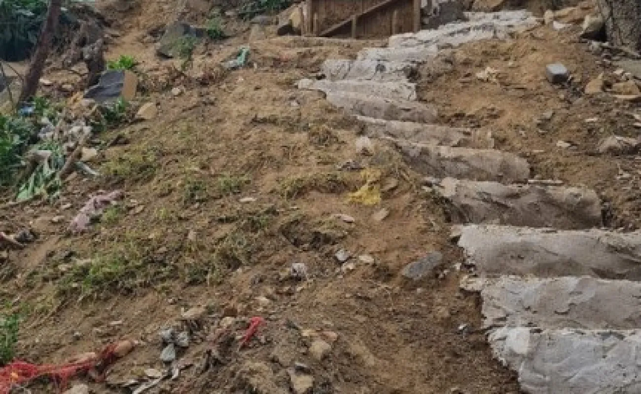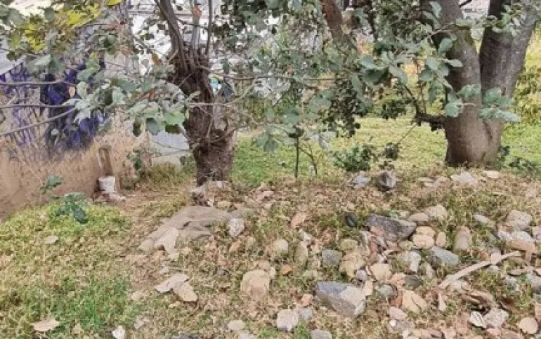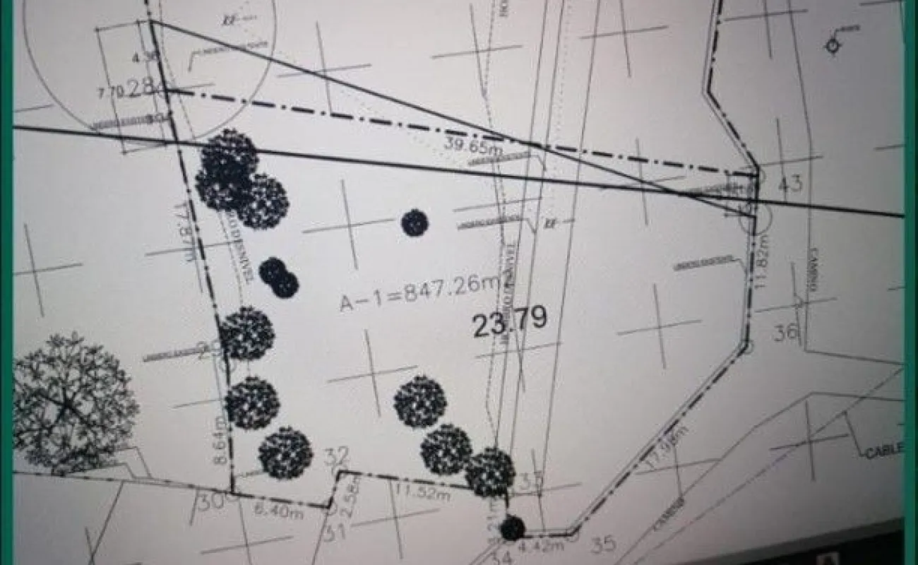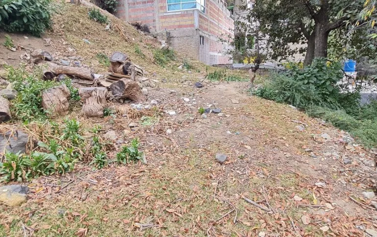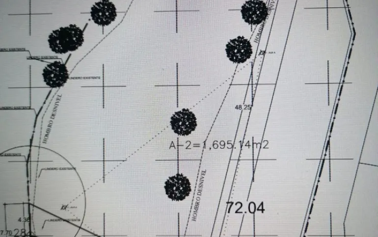 Terreno de dimensiones irregulares con pendiente de bajada.