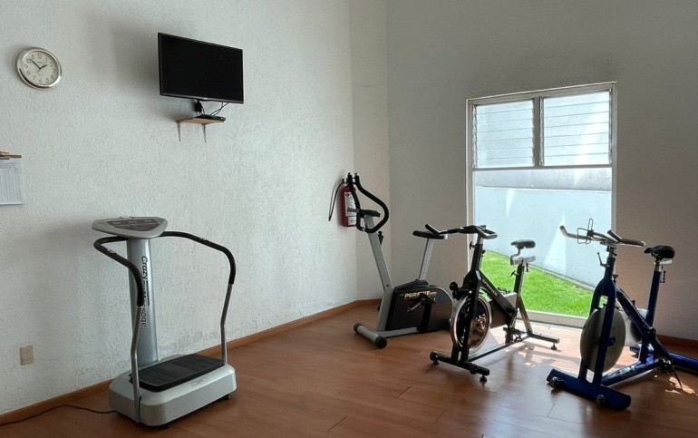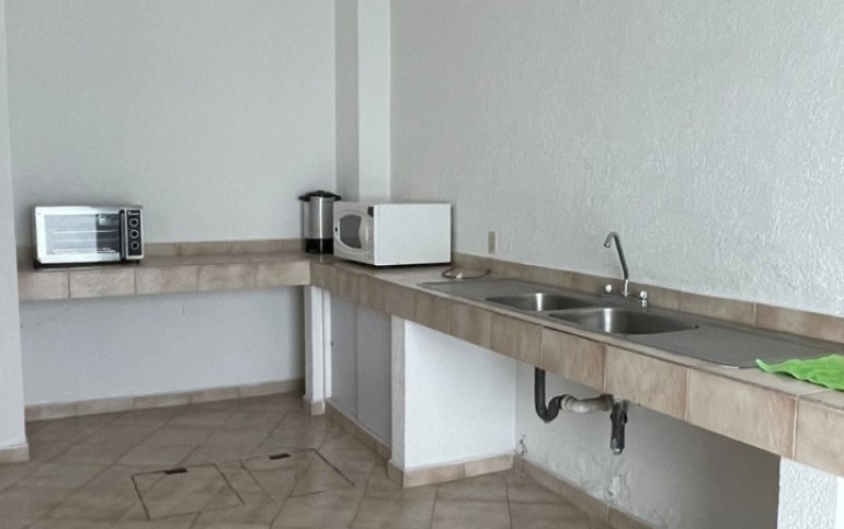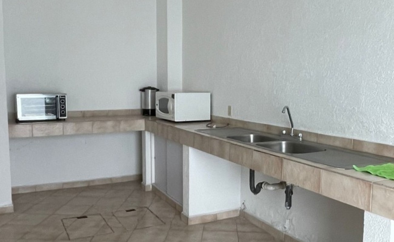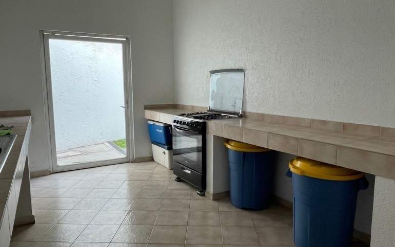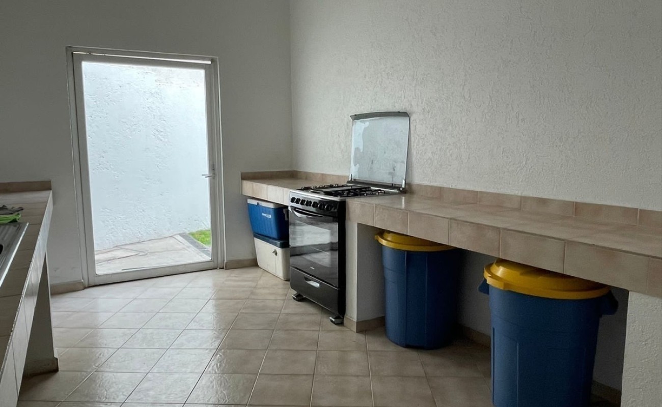 -Tiene cocina con microondas, cafetera, estufa, horno eléctrico, asador, hieleras, botes de basura y asador.