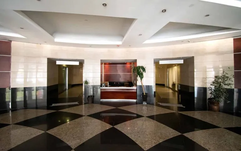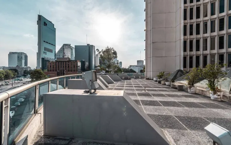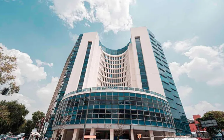 16 pisos. Altura 2.80 – 3.50 metros. Estacionamiento disponible. 4 Elevadores con capacidad para 10 personas y 1 montacargas. Escaleras de servicio y de emergencia.