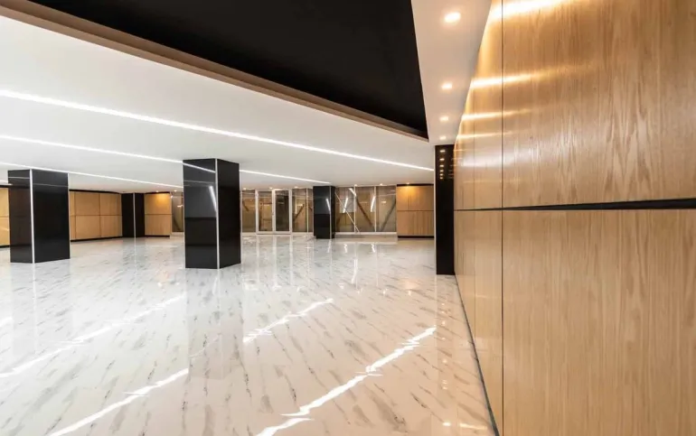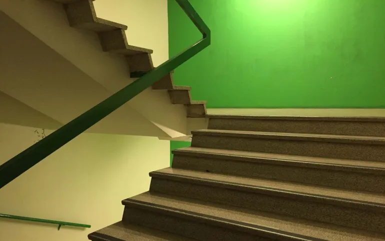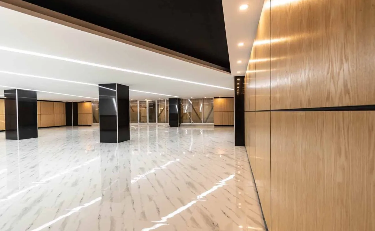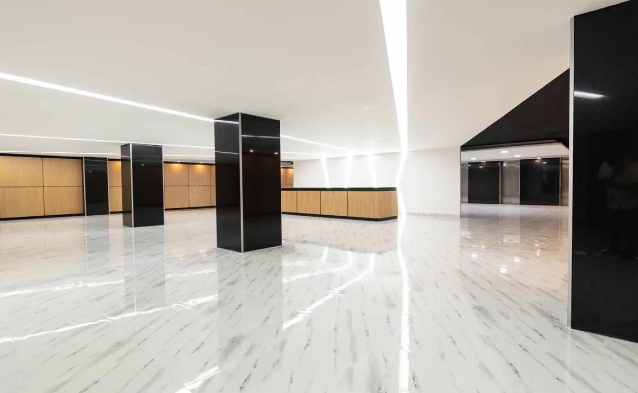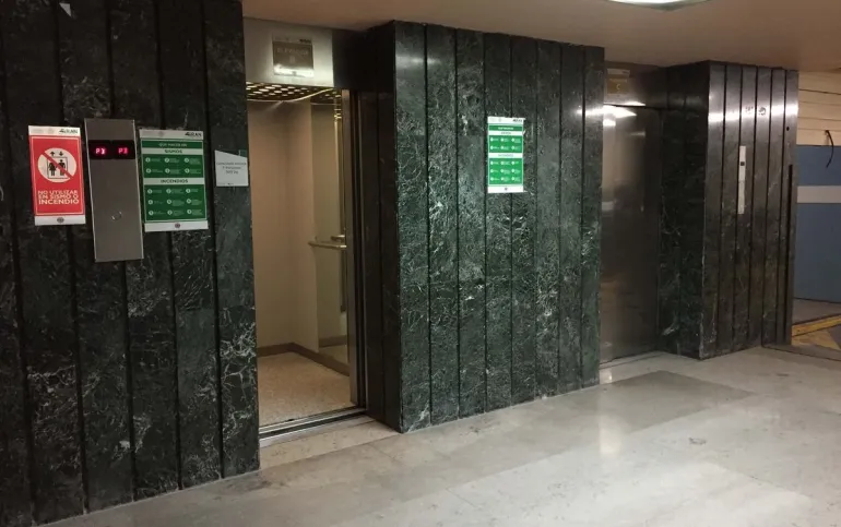 Amplias escaleras que comunican con todos los pisos y por sus dimensiones facilitan la circulación de todo el personal, así como la segura y rápida evacuación en caso de una emergencia, el corredor en planta baja que da acceso a los elevadores, escaleras y oficinas esta cubierto de mármol pulido así como las columnas.