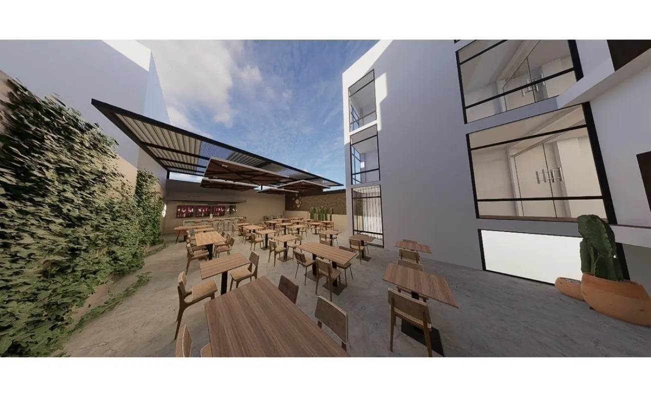 La Terraza trasera mide 75 m y se puede rentar de forma independiente junto con la renta de algún piso por la cantidad de 15,000 pesos extras mensualmente a la renta