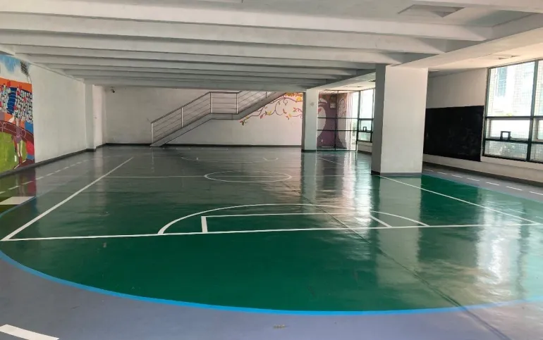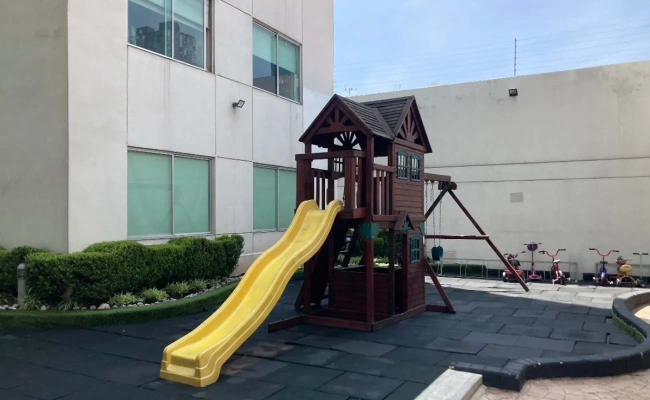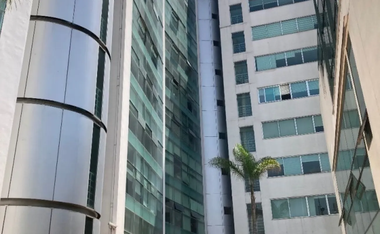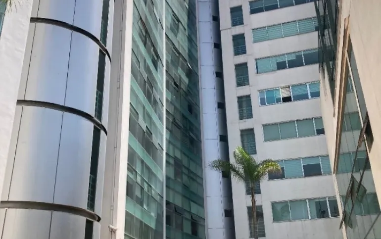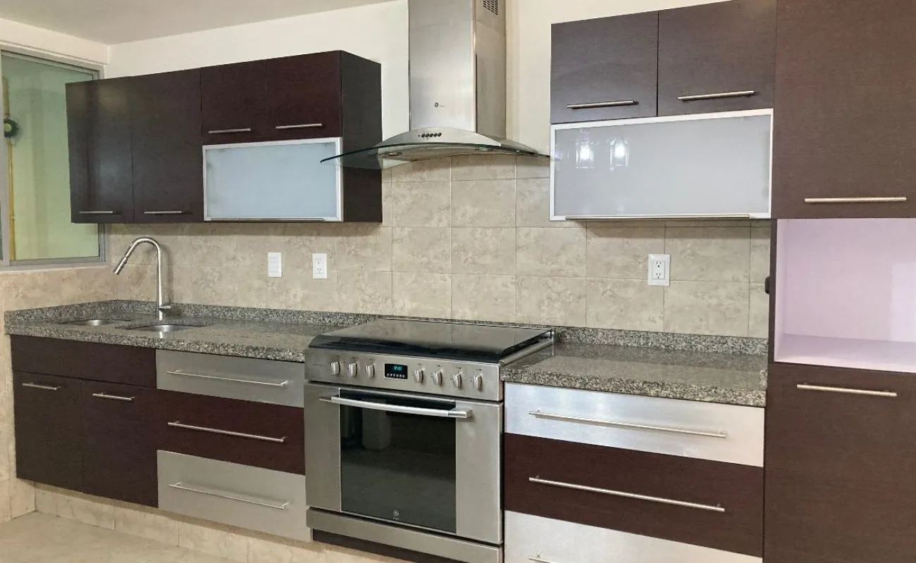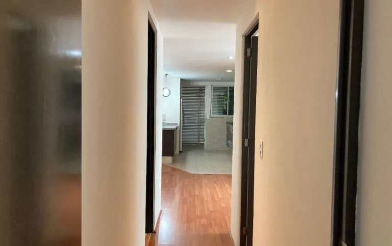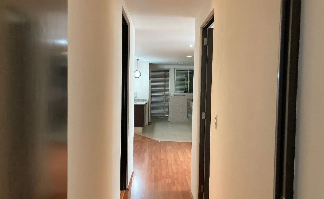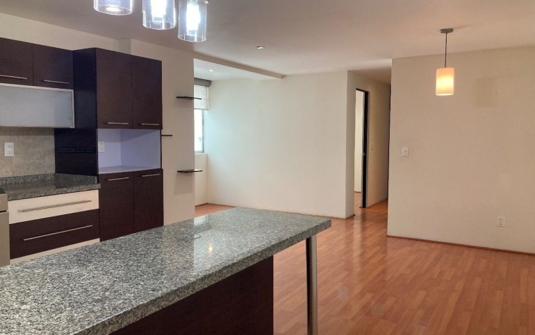 Departamento de 100m2, dos recámaras, dos baños, 2 estacionamientos con elevador. Cocina integral incluye refrigerador. Área de lavado. Gas natural, piso 8. Mantenimiento incluido