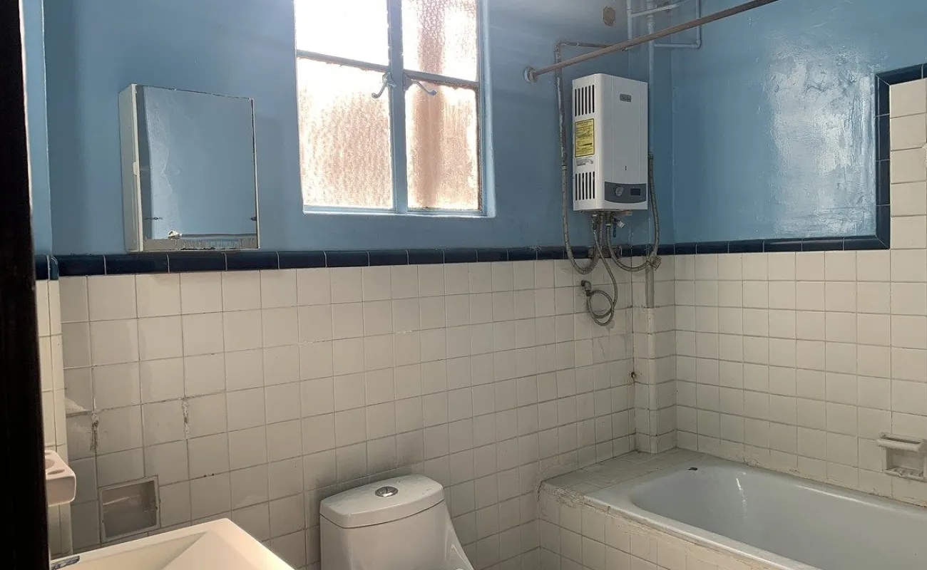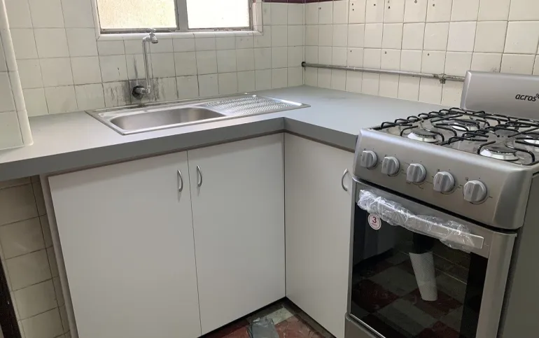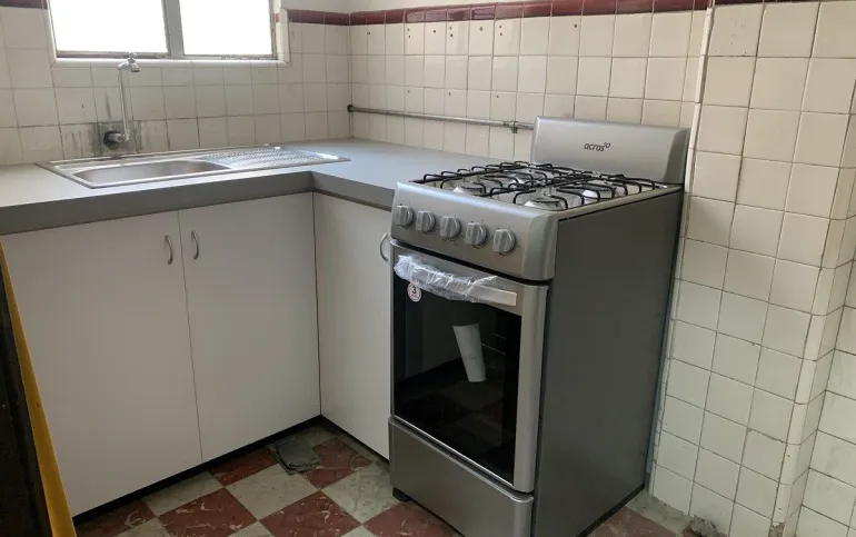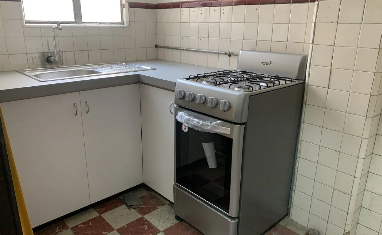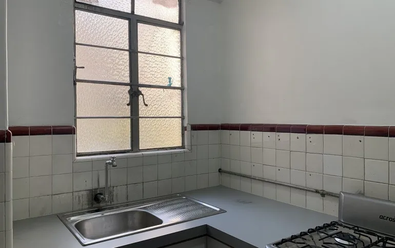 Depto de superficie 70m con 1 baño amplio, sala comedor y cocina cerrada, un área de lavanderia pequeña y patio pequeño de tendido, 2 recámaras, no hay estacionamiento pero hay pension a 2 cuadras en el fronton méxico. Edificio sólido en buen estado en piso 1 arriba del nivel de calle. Techos altos y buena luz