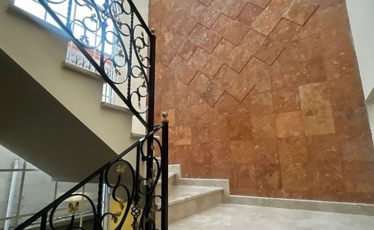 Escaleras de mármol con barandal de hierro forjado