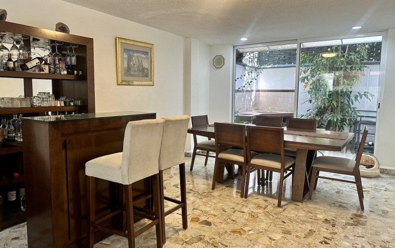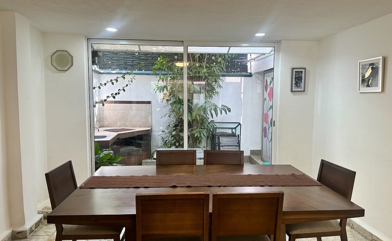 Estancia de sala y comedor, Cocina integral totalmente equipada,Patio interior arbolado con asador, Medio baño de visitas, Estudio, área de lavado (Con lavadora y secadora).