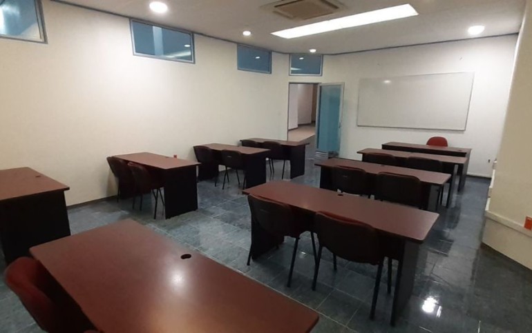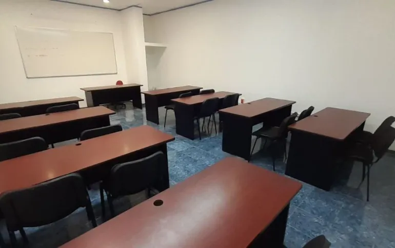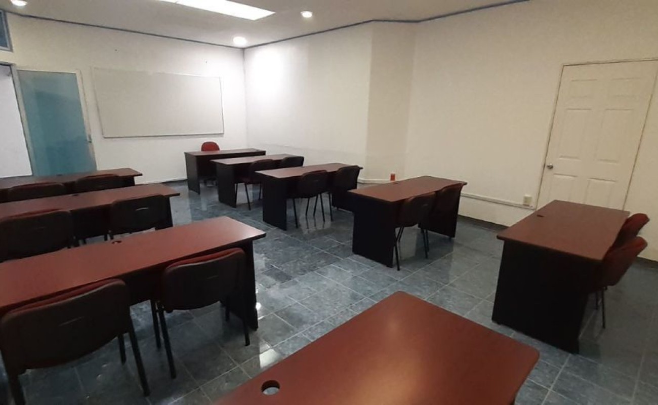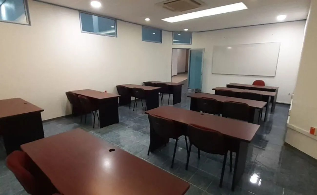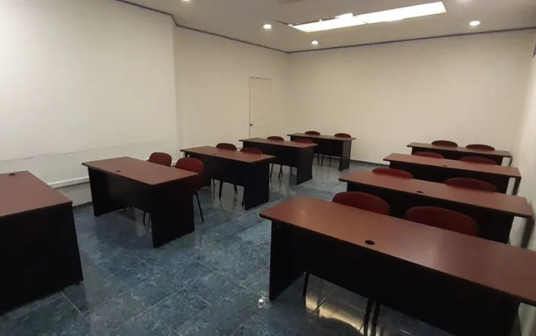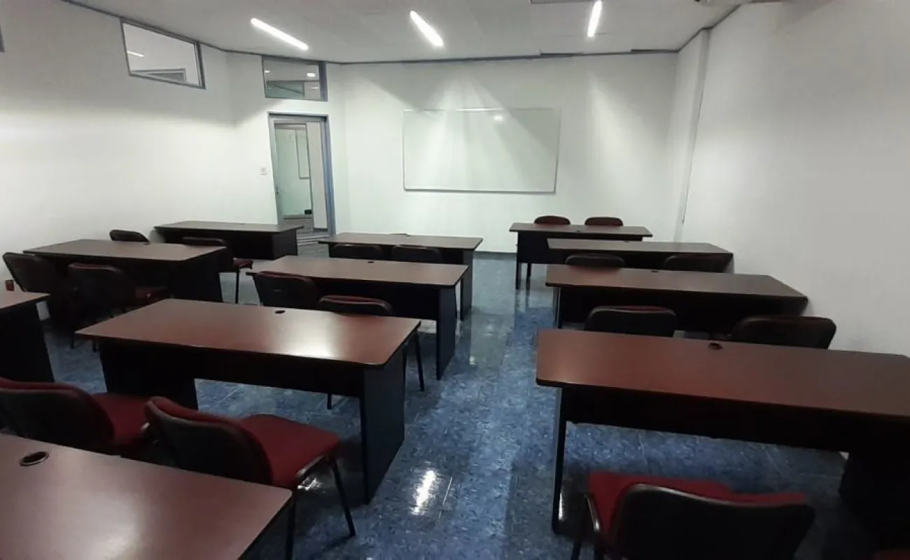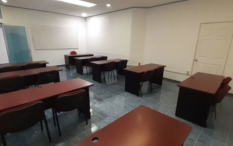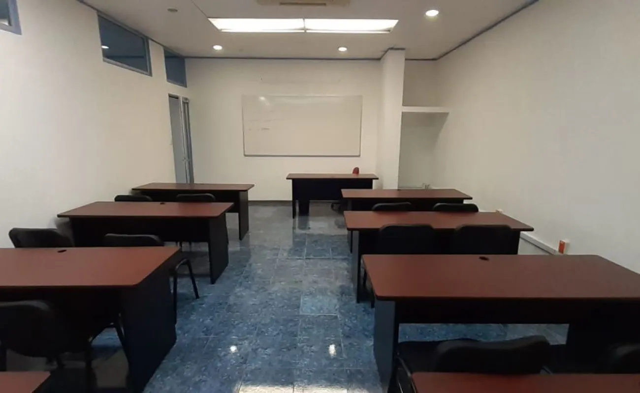 Cuenta con una puerta de acceso de vidrio y cortina de acero, recepción y sala de espera, tres aulas de sesenta, ochenta y cien, y un área para doce estaciones de trabajo, así como un comedor para que tus empleados disfruten de un espacio agradable y confortable durante sus horas de descanso.