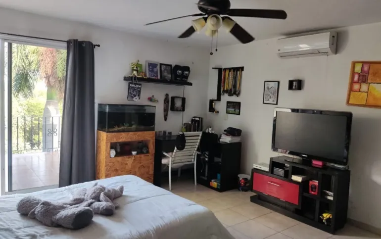 4 recámaras con aire acondicionado, 4.5 baños, jardín privado, estacionamiento para 2 carros.