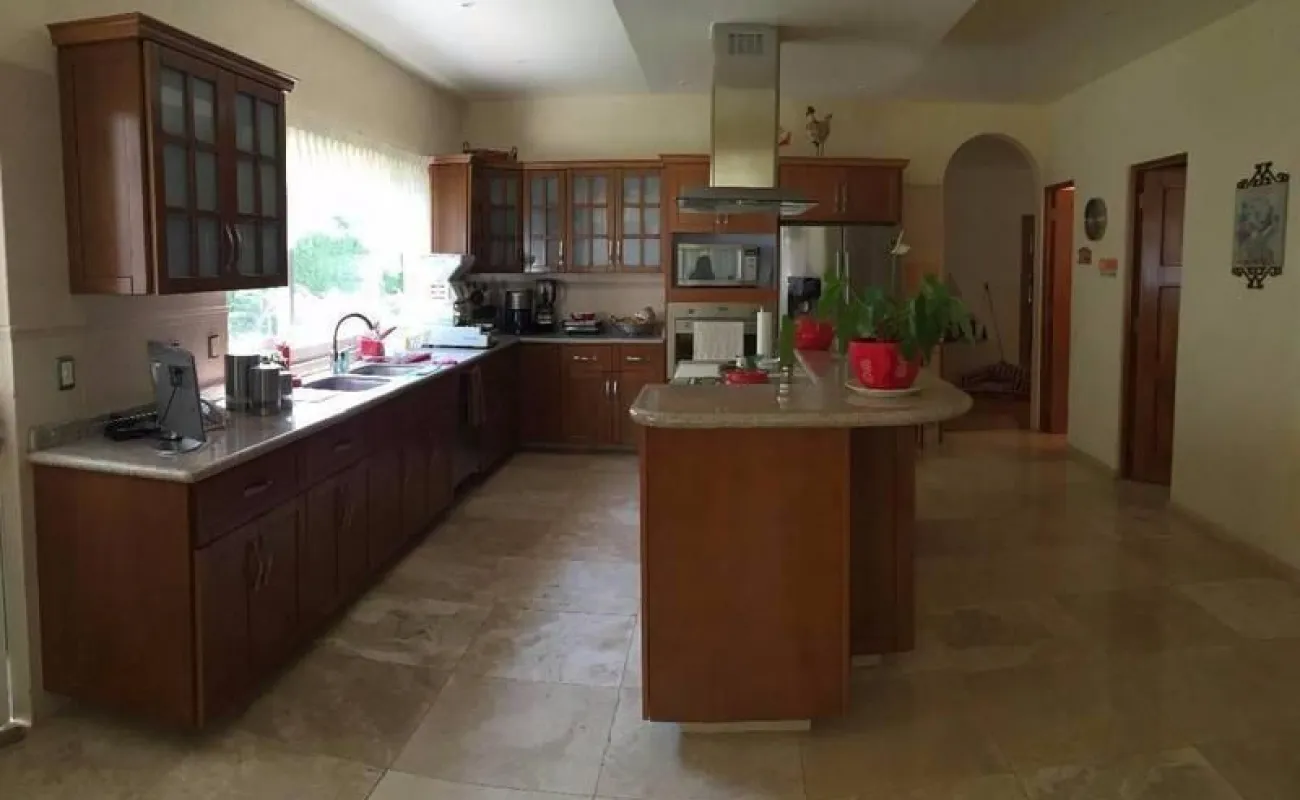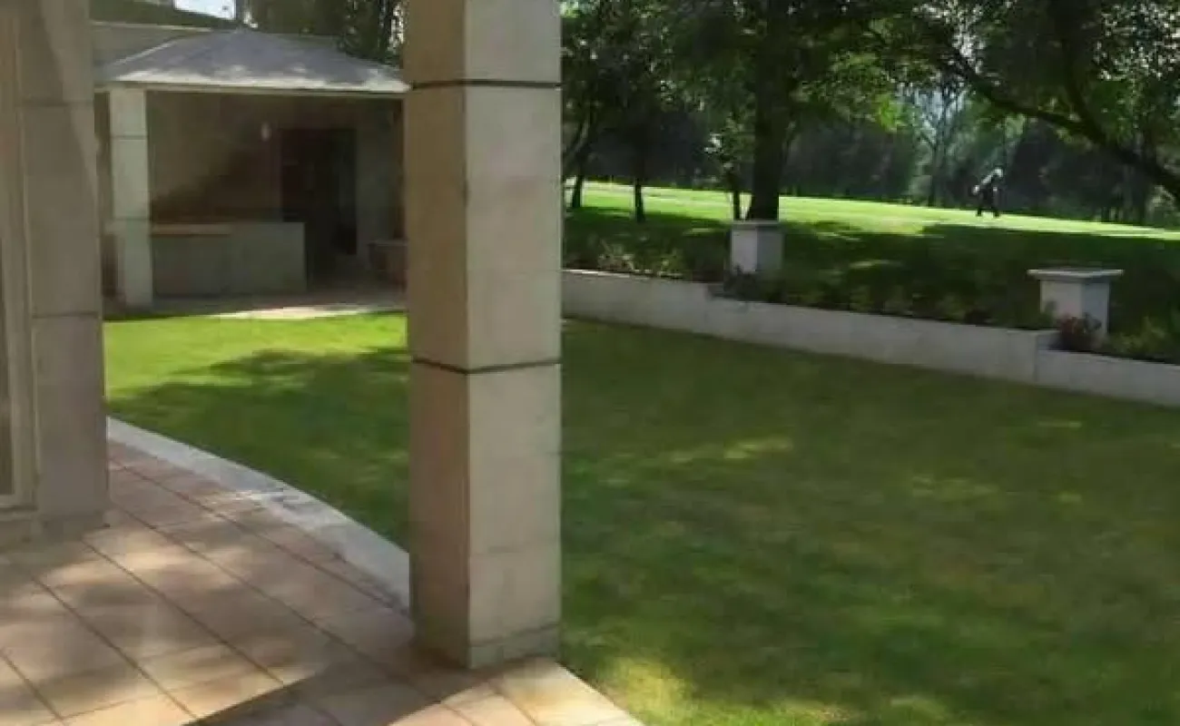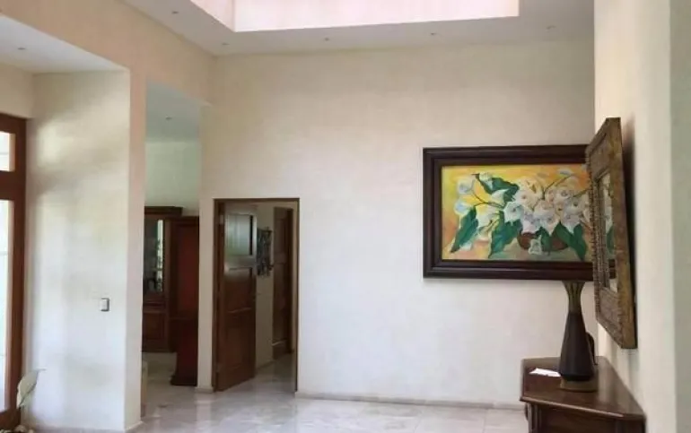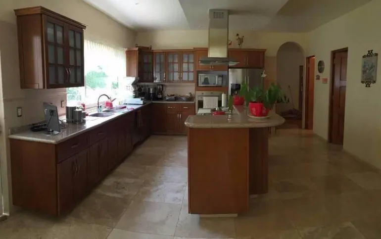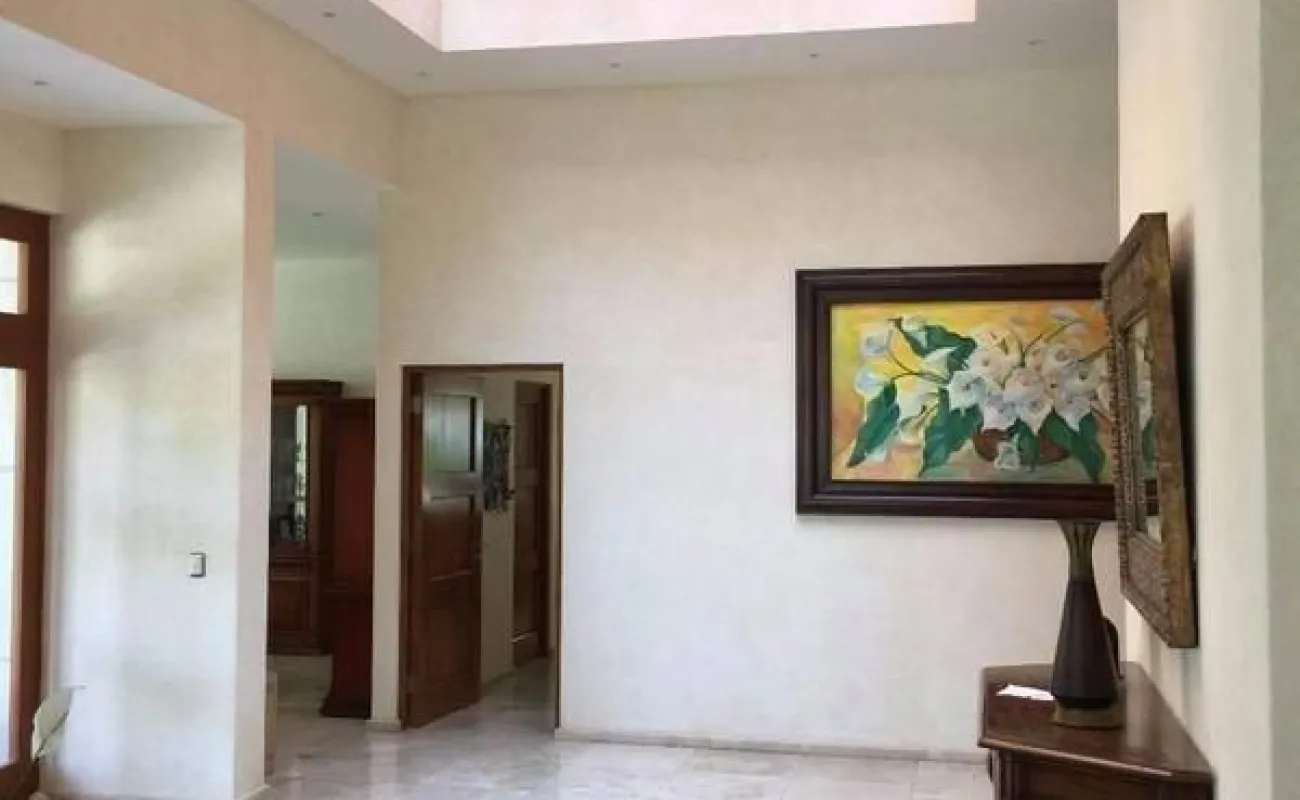 Te gusta disfrutar una hermosa vista al campo de golf viendo al hoyo 10 y 16 en la intimidad de tu terraza o salir desde tu jardin de 250 mts para ir a caminar por el campo de golf y regresar a disfrutar de una reunión en la palapa con asador y barra para disfrutar una bebida ? o caminar solo unos cientos de metros y estar en la casa club del fraccionamiento donde te puedes ejercitar en la disciplina que mas te agrade , comer con tus amigos de juego o desayunar en un reunión informal entre semana o con la familia? te invito a conocer esta hermosa residencia que tiene garage para 6 carros ; entrada en escalinata ligera a un lobby de doble altura donde te conduce a disfrutar de la vista al campo de golf desde la sala principal con espectaculares ventanas , e ir a un intimo pero gran espacio para el comedor; con una cocina con barra, alacena y antecomedor; que sale a dos cuartos de servicio con baños , cuarto de lavado y patio de tendido; medio baño de visitas, y un estudio u oficina.