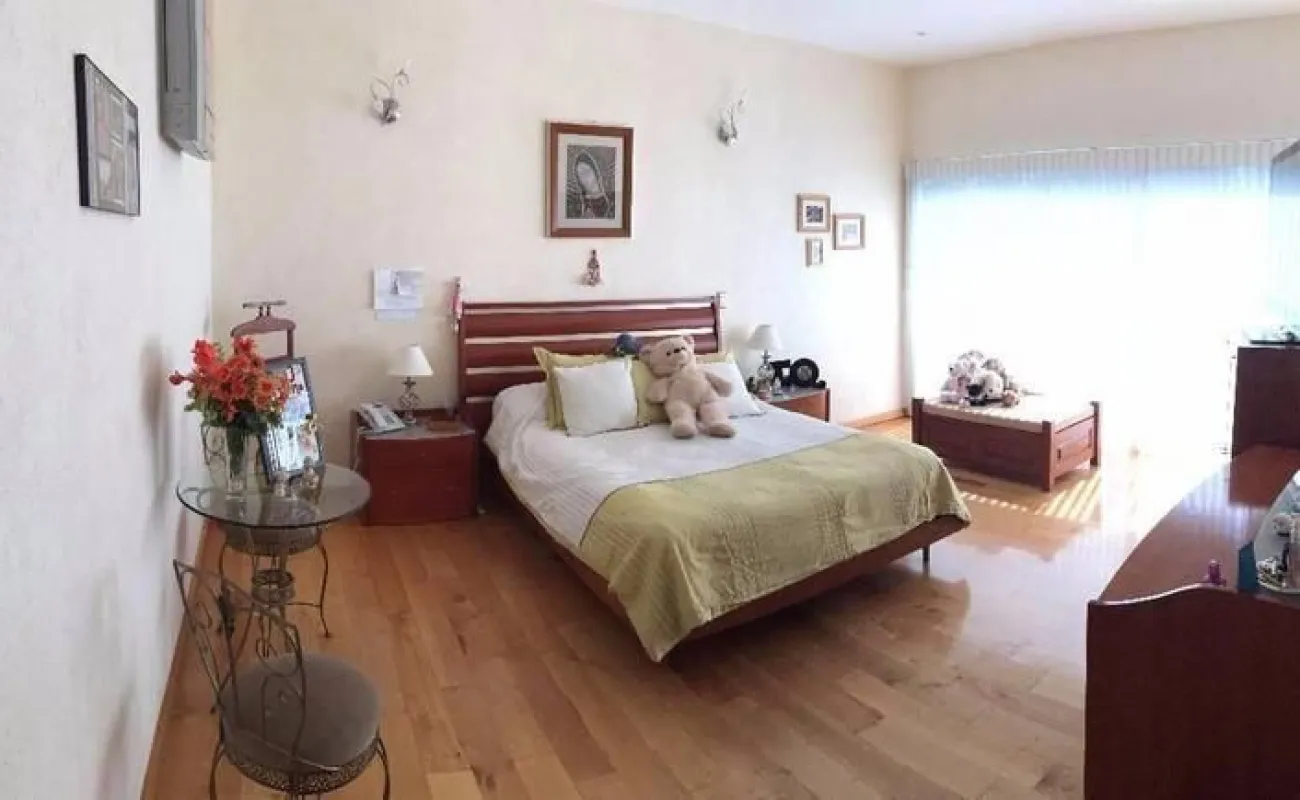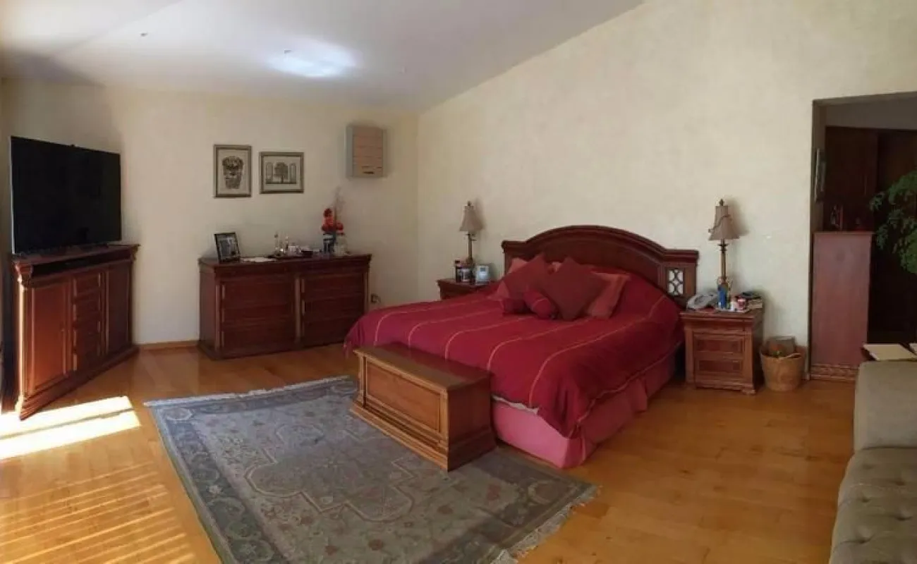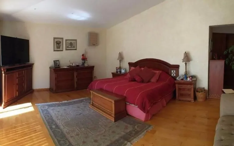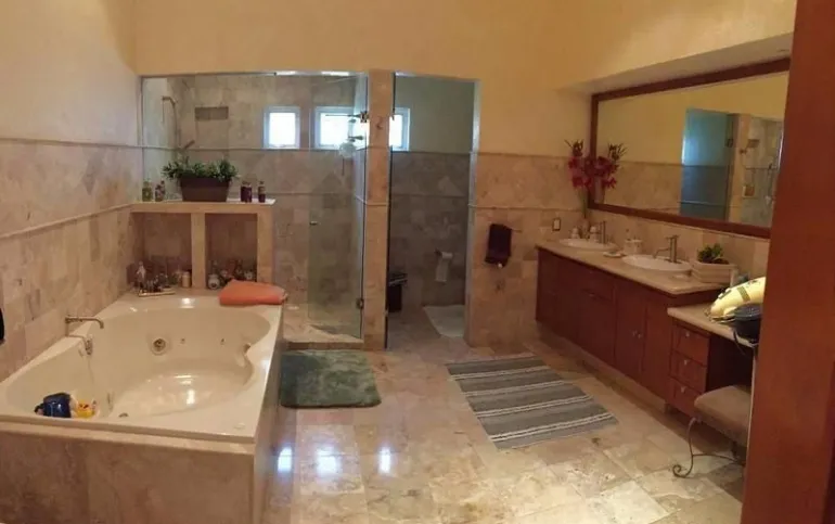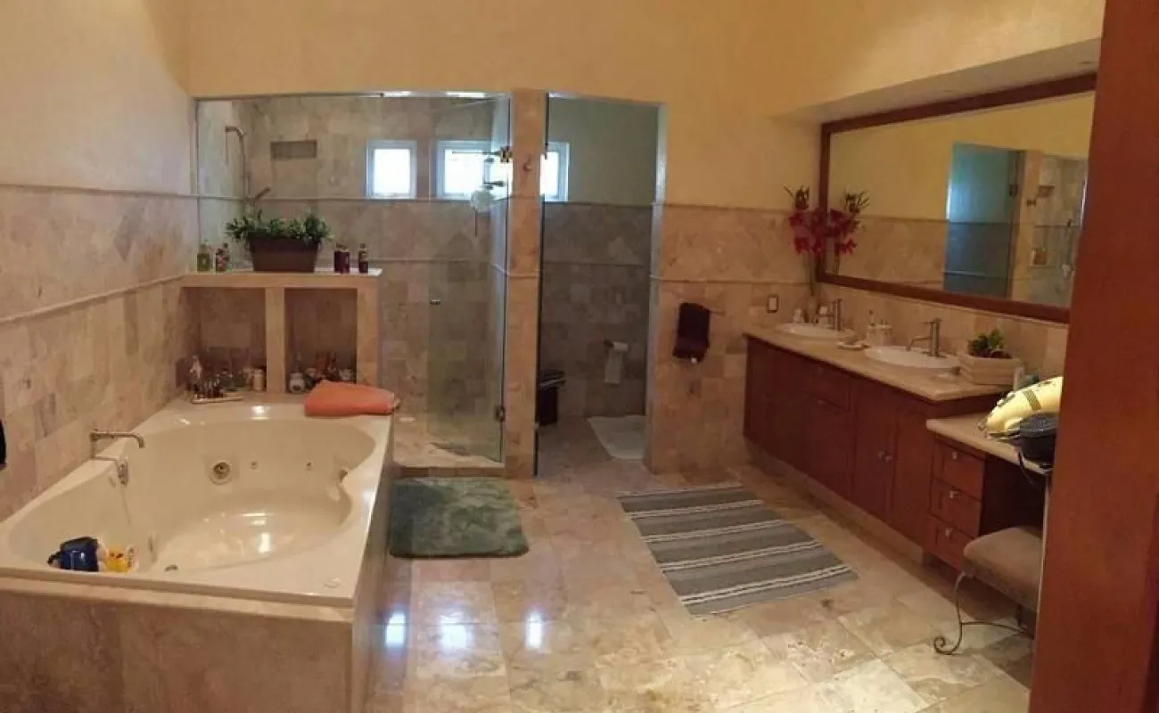 y en la planta alta tiene 5 recámaras con baño completo y vestidor cada una , la principal con jacuzzi y , T.V. Room en ese piso.