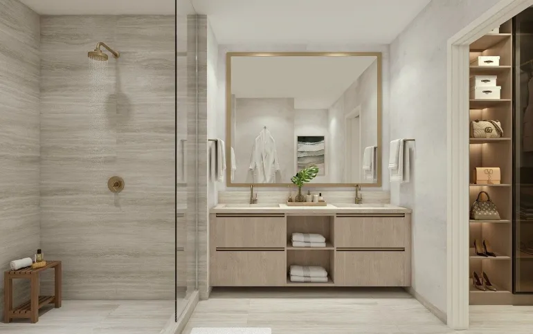 La suite principal es un verdadero retiro, equipada con doble Walk-In Closet y un baño principal con doble lavabo, diseñado para ofrecer la máxima privacidad y amplitud. Una terraza corrida conecta tu descanso con el horizonte de Miami.