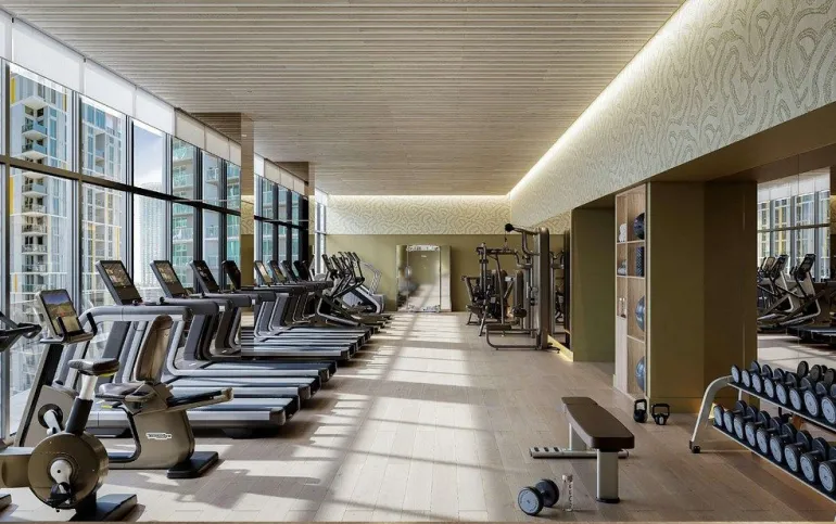 • Santuario de Bienestar: Un centro de fitness de vanguardia que se siente como un club privado, complementado con saunas, salas de tratamiento y un ambiente diseñado para revitalizar cuerpo y mente.