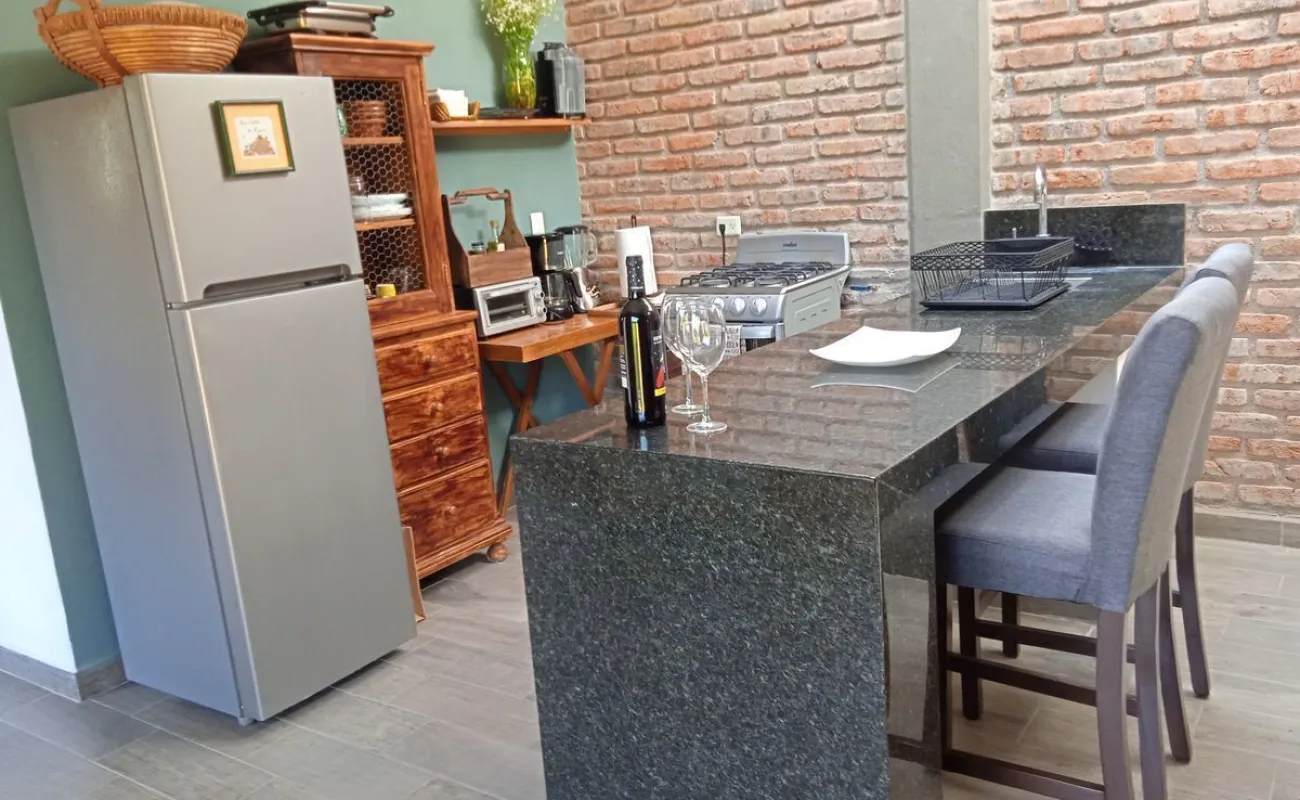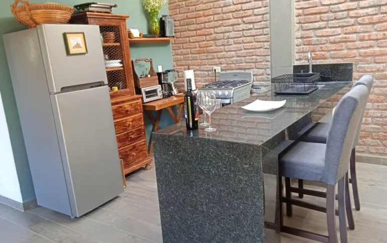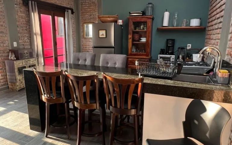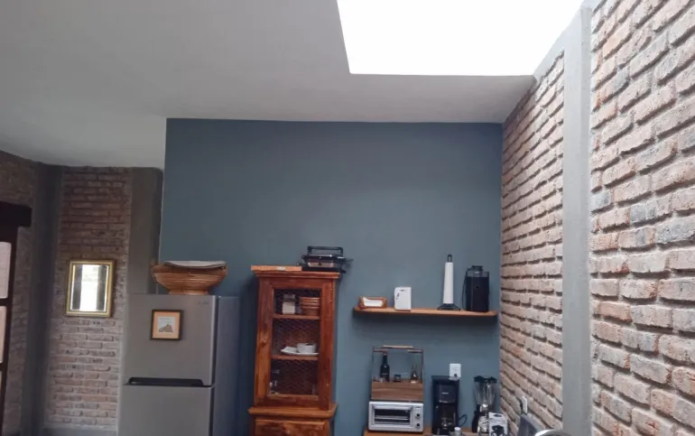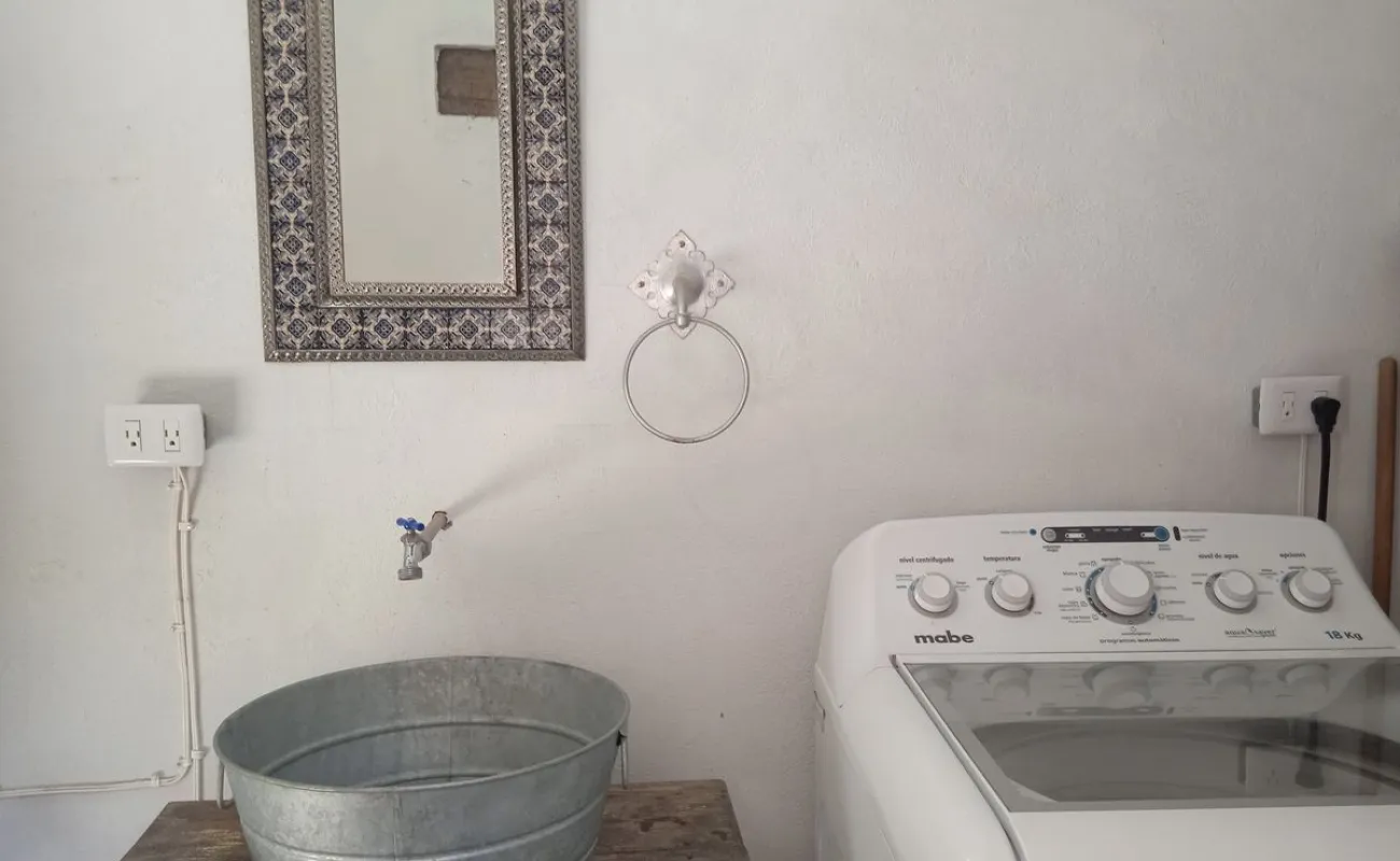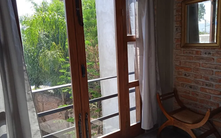 Superficie 65 mts, con techos altos, domos y excelente iluminación. Cuenta con un baño amplio, recámara con cama king size, sofá cama, y vestidor grande. Terraza y jardín compartido con la casa contigua. Cocineta con refrigerador, estufa, electrodomésticos, utensilios de cocina, barra de granito, pantalla de TV y lavadora (compartida) . Ubicado en fraccionamiento abierto, frente a un parque. A unas cuadras se encuentran transporte público, tiendas de conveniencia, hospital y restaurantes. Distancia 30 minutos caminado al Centro, 10 minutos en auto.
