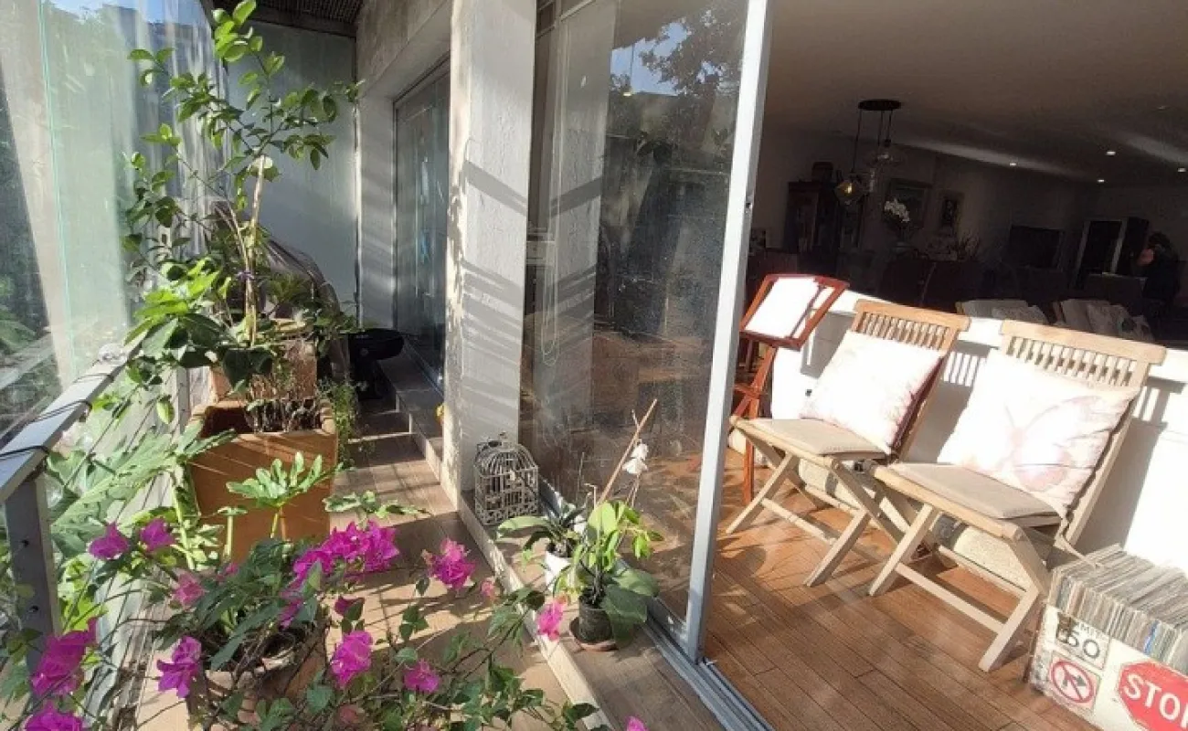 Balcón con piso de cerámica, ideal para un asador
