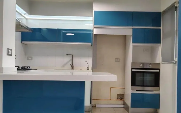 Cocina abierta con barra de cuarzo