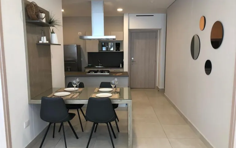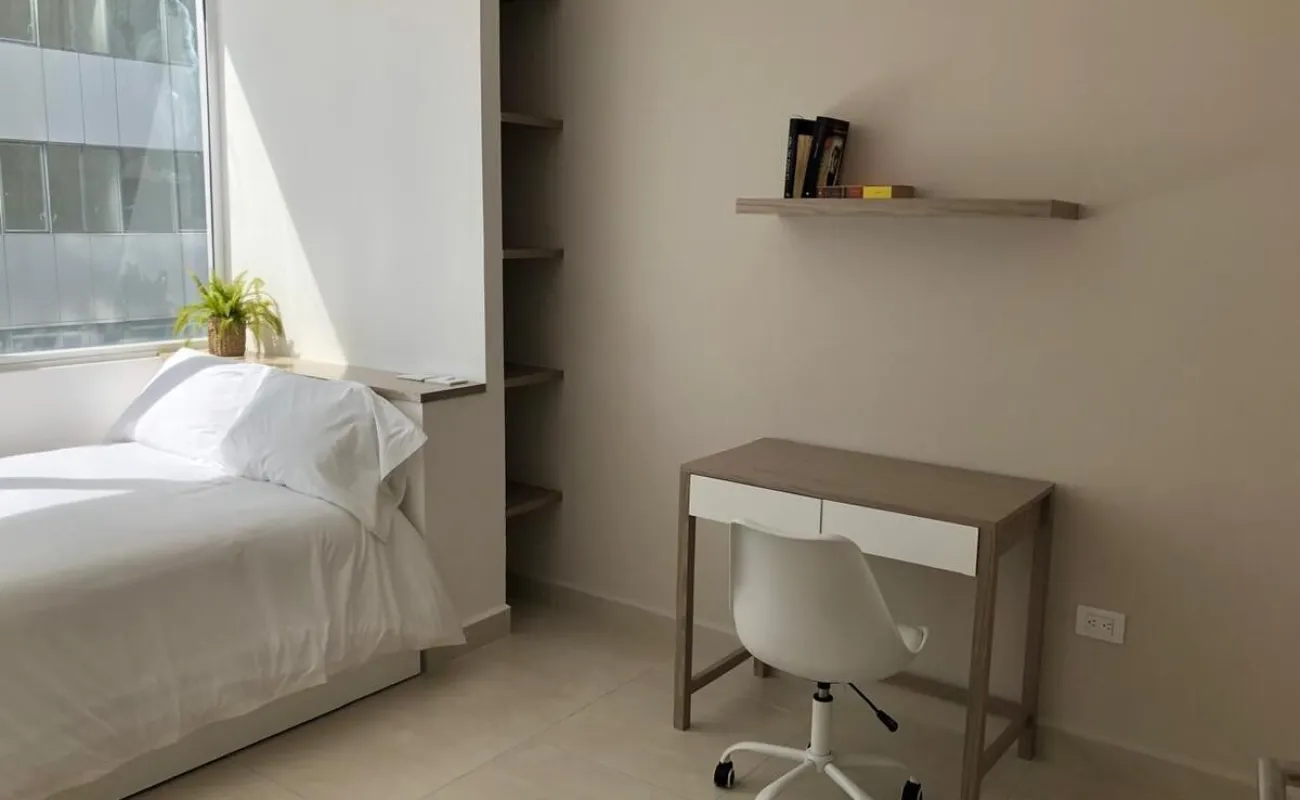 Se renta departamento muy iluminado, amueblado y equipado de 83 mts cuenta con 2 recamaras, la principal con vestidor y baño completo, la secundaria con closet y baño completo, baño de visitas, estancia, cocina abierta, cuarto lavado y 2 cajones de estacionamiento.