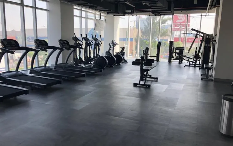 Recepción, alberca techada y terraza, gimnasio (con área de baños y regaderas), salón de fiestas, ludoteca, salón de usos