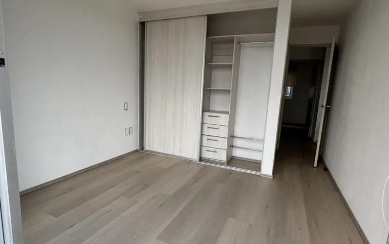 Cuenta con estancia para sala comedor, cocina abierta, dos recamaras; la principal con baño y closet. La secundaria con closet. Tiene un segundo baño completo que da servicio a la recámara secundaria y al área social.