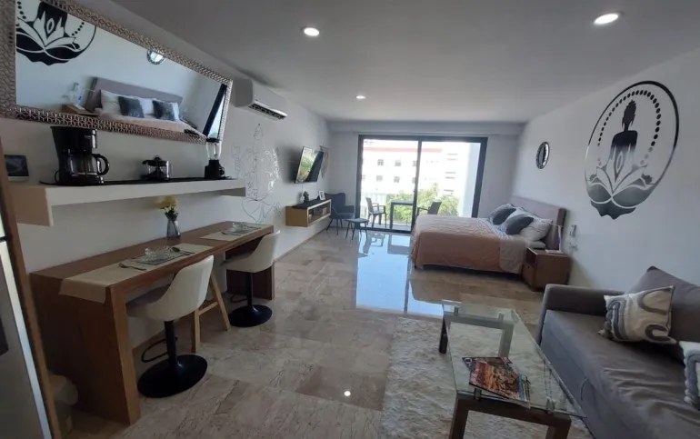 53 mts 4to piso, elevador, gym, camastros de masaje, jacuzzi, coworking, alberca infinity, estacionamiento común, Seguridad 24 hrs.