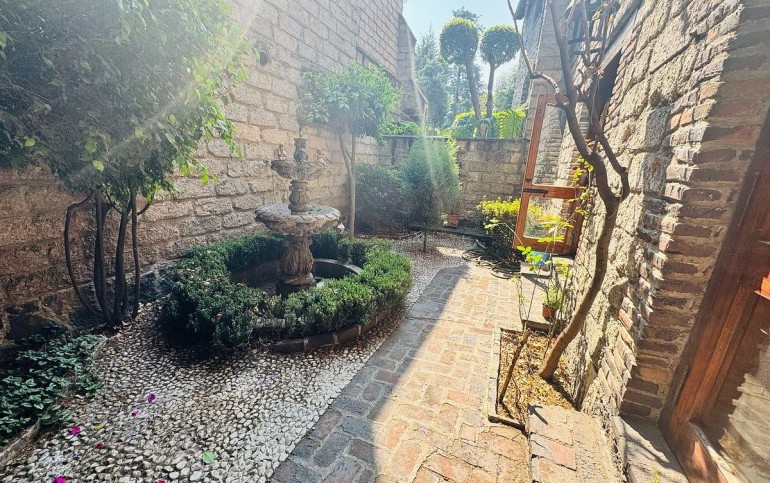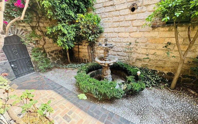 • Dos patios con fuentes y ambientación medieval, perfectos para relajarte y disfrutar de un ambiente inigualable.