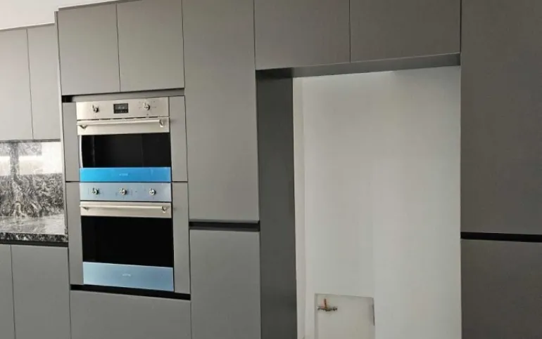 -Cocina cerrada y equipada con estufa, lavavajillas, horno y horno de microondas todo marca SMEG, barra de cuarzo, una alacena impresionante.