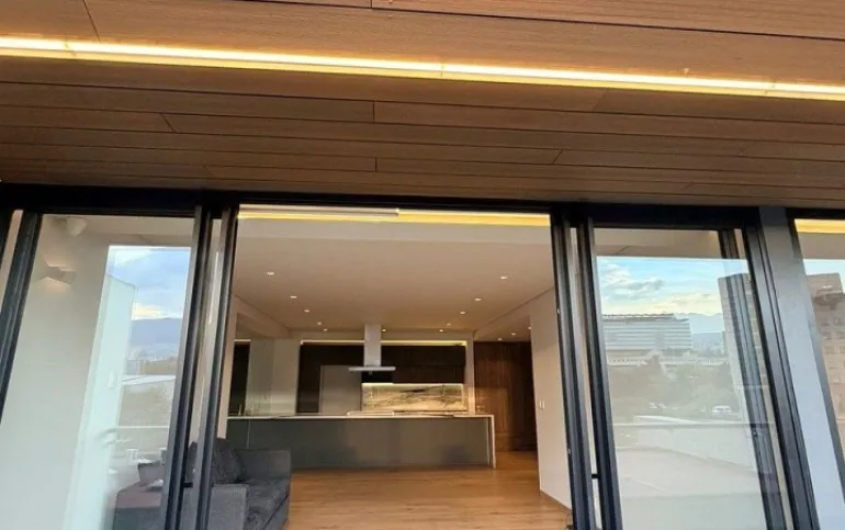 El departamento cuenta con 148 m² interiores más 28 m² de terraza, logrando una distribución funcional y cómoda. La sala y comedor se conectan con un balcón-terraza de 28 m², ideal para disfrutar la vista y el aire libre.