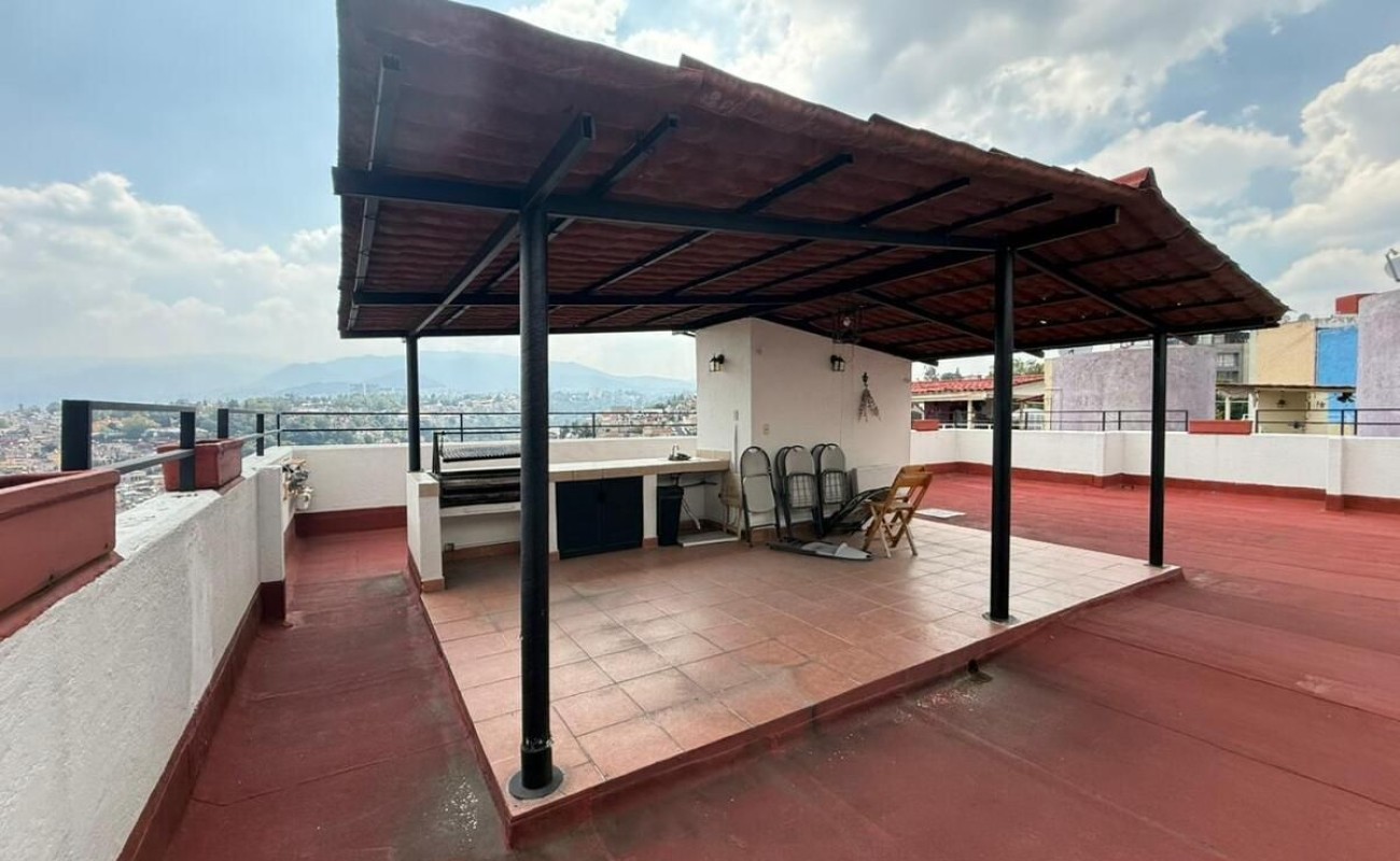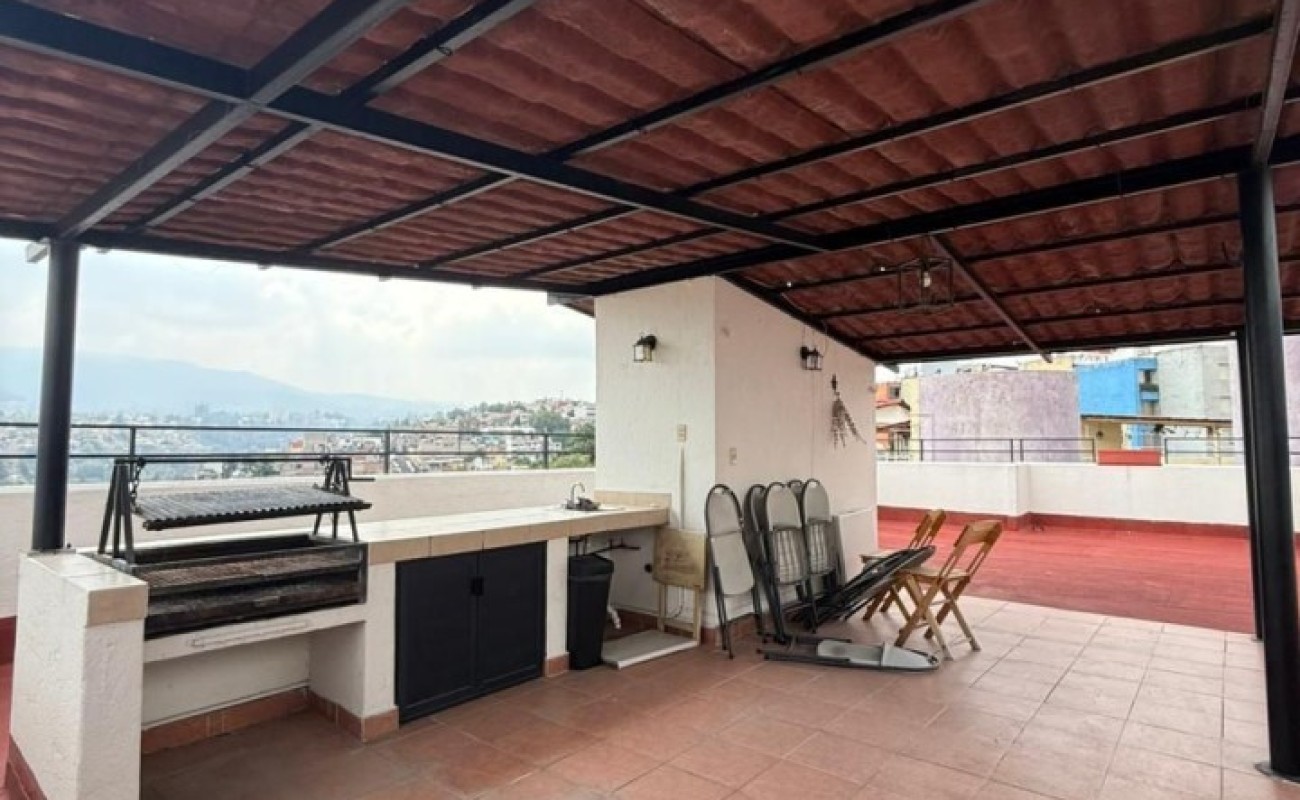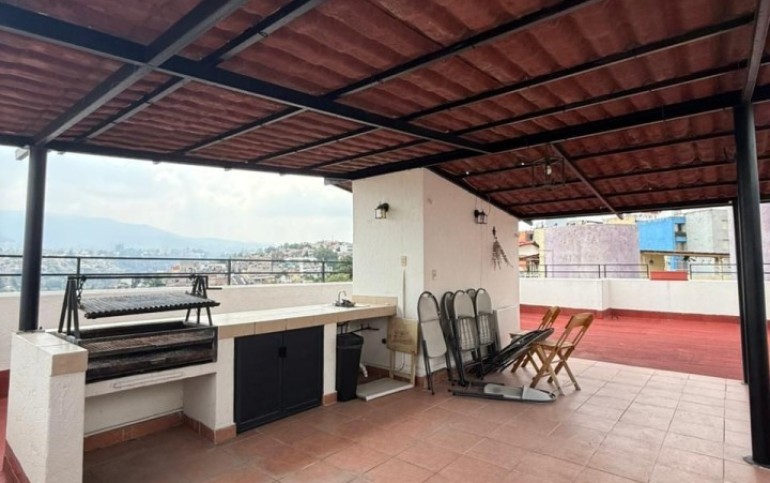 Características: 125 metros habitables Roof garden privado ( se ingresa por fuera) de 125 metros con asador y baño Cocina abierta con barra Área de lavado Cuarto de servicio con baño completo Remodelado Baño completo que da servicio a 2 da y tercer recámara Recámara Principal con vestidor y baño completo ,vista exterior Clóset de blancos Avalúo 5.5 Precio $4,750,000 Edificio 20 años Bodega El cuarto de servicio se puede usar como estudio u oficina. salón de eventos Bonitas vistas, muy iluminado,edificio tranquilo 2 departamentos por piso y la torre tiene solo 3 pisos Estacionamientos que no se estorban Vigilancia 24/7 Súper ubicado a 10 mins de Santa Fe y a 3 cuadras de Calzada de las Aguilas A 15 min. de periférico