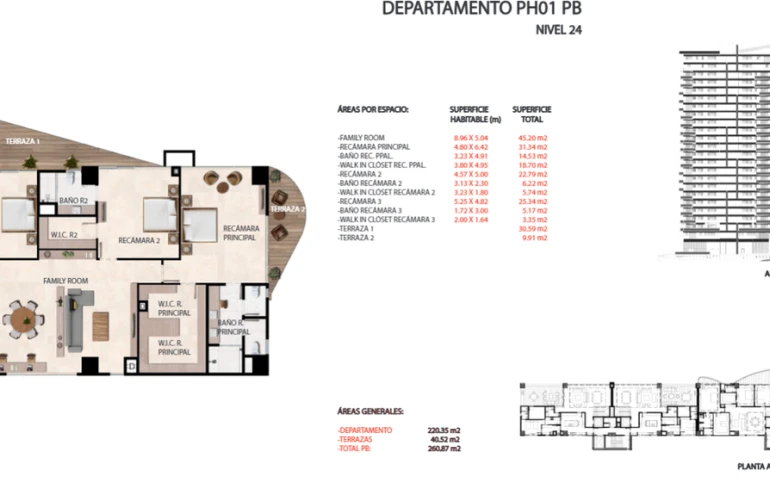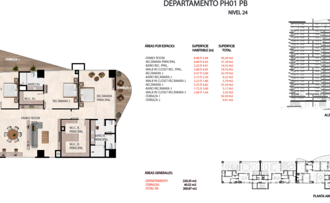 En la planta baja, encontrarás tres amplias recámaras. La recámara principal te recibirá con un baño dual, un walk-in closet y una terraza techada privada, brindándote un espacio de descanso y privacidad incomparables. Las dos recámaras secundarias también cuentan con baño completo, walk-in closet y terraza individual, ofreciendo comodidad y estilo a cada miembro de la familia.