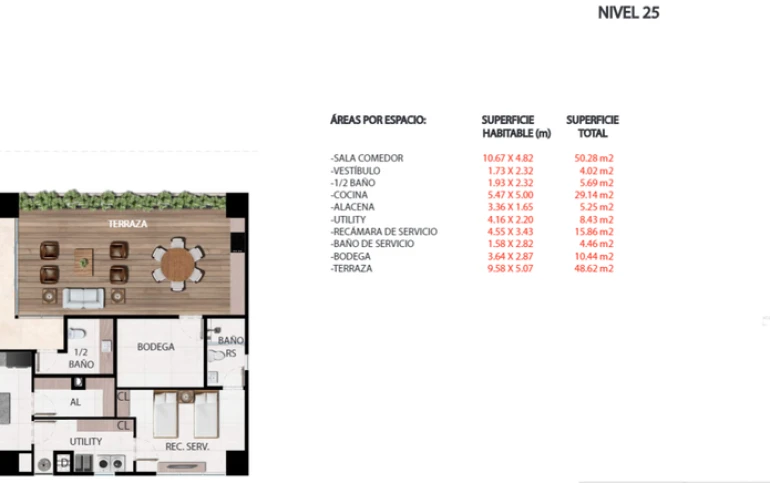 En el primer nivel, descubrirás un espacioso y luminoso espacio de sala-comedor con una terraza que te regalará una vista panorámica impresionante de toda la zona. Podrás disfrutar de momentos inolvidables y relajarte mientras admiras el paisaje. Además, contarás con una bodega dentro del departamento para almacenar tus pertenencias de manera organizada.