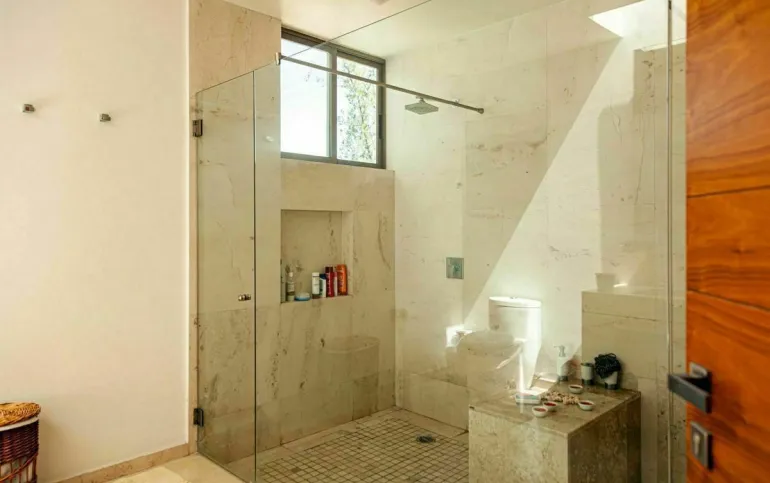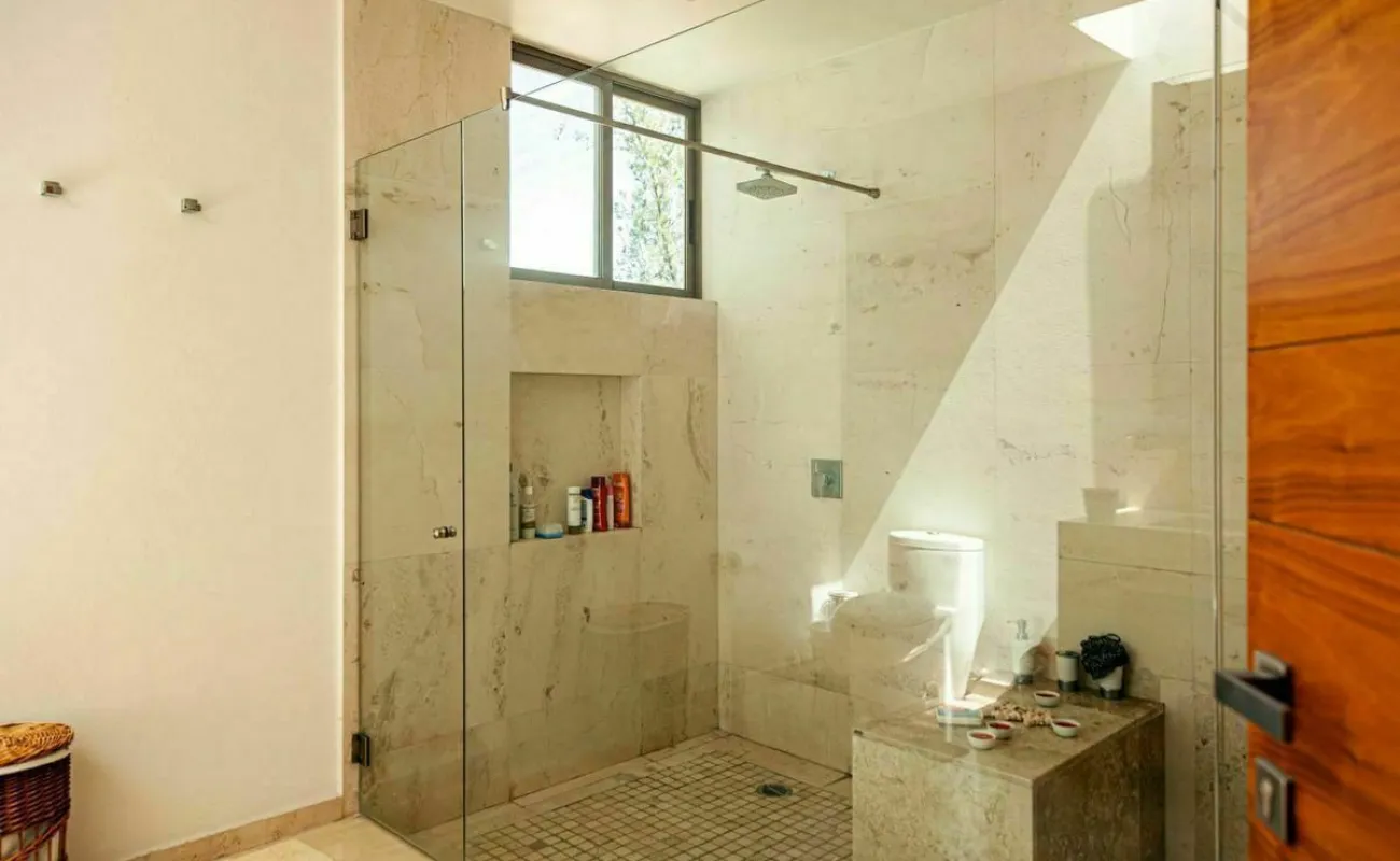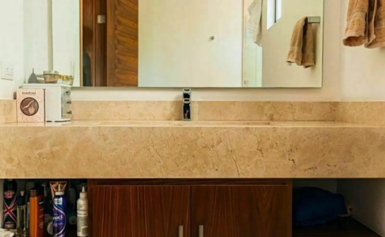 *1 recámara principal muy espaciosa con vestidor enorme, baño con 2 lavamanos con cubierta de marmol y regadera amplia con vidrio templado de 9mm.