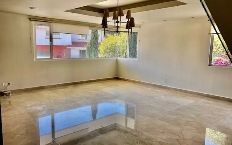 Casa Renta Lomas Country Club, con acabados AAA, Sin Amueblar. -Terreno 750 metros y - Construcción 850 metros -Jardín 130 metros aprox -4 recámaras con baño y vestidor (la principal cuenta con dos regaderas y dos wc ) -2 medios Baños -Cuarto de tele -Sala, comedor con chimenea de gas -Cocina con desayunador -Oficina y un cuarto de tele en el área de abajo -Cuarto de fiestas con cava y bar para setenta personas con medio baño -Estacionamiento para 5 coches con baño para choferes y cuarto de descanso -cuarto de servicio p/ 3 muchachas con baño completo -Sonido Sonos en toda la casa -Dos bodegas -la casa tiene nueve años de remodelada totalmente -Permite mascotas -Renta NO amueblada -seguridad 24/7