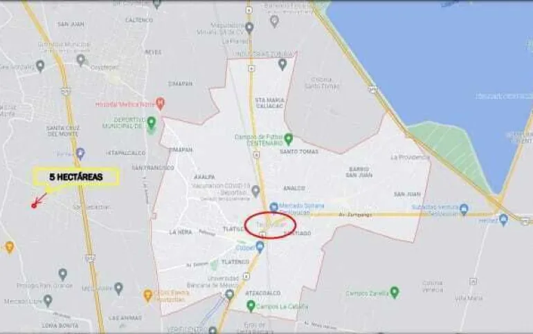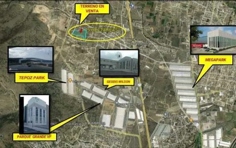 Terreno en venta: Terreno en Venta en San Sebastián Teoloyucan Ubicación: San Sebastián Teoloyucan, Estado de México Características: - Superficie total: 5 hectáreas (50,000 m²) - Uso de suelo: Zona industrial y comercial - Forma del terreno: Irregular, plano pendiente - Título de propiedad: Vigente Ventajas: - Excelente ubicación geográfica, punto de entrada a la zona metropolitana - Lugar de intercambio comercial entre la zona norte del país y la zona centro - Rodeado de sitios comerciales y parques industriales importantes - Servicios disponibles: agua, energía eléctrica, teléfono, drenaje Comunicaciones: - Vialidades cercanas: acceso a rutas de autotransporte locales y autobuses foráneos - Ubicación estratégica cerca de empresas como Jugos del Valle, Global Equipment, Polo Querétaro, entre otras Precio de Venta: - $2,100 por metro cuadrado Total: $105,000,000 (50,000 m² x $2,000/m²)